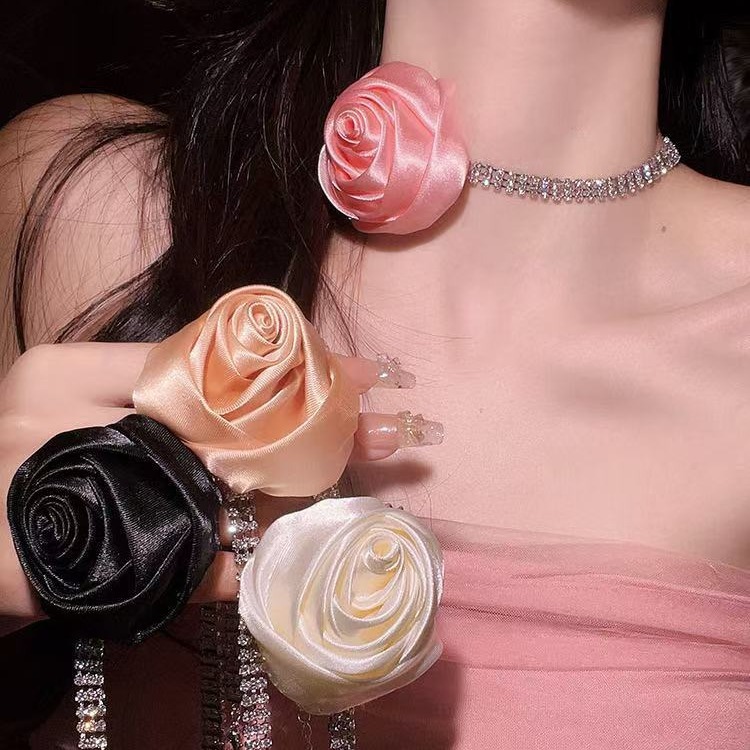 2023新型ダイヤモンドバラ花ネックレスネット赤高級感y 2k甘いクールなギャルchocker首錬起爆金