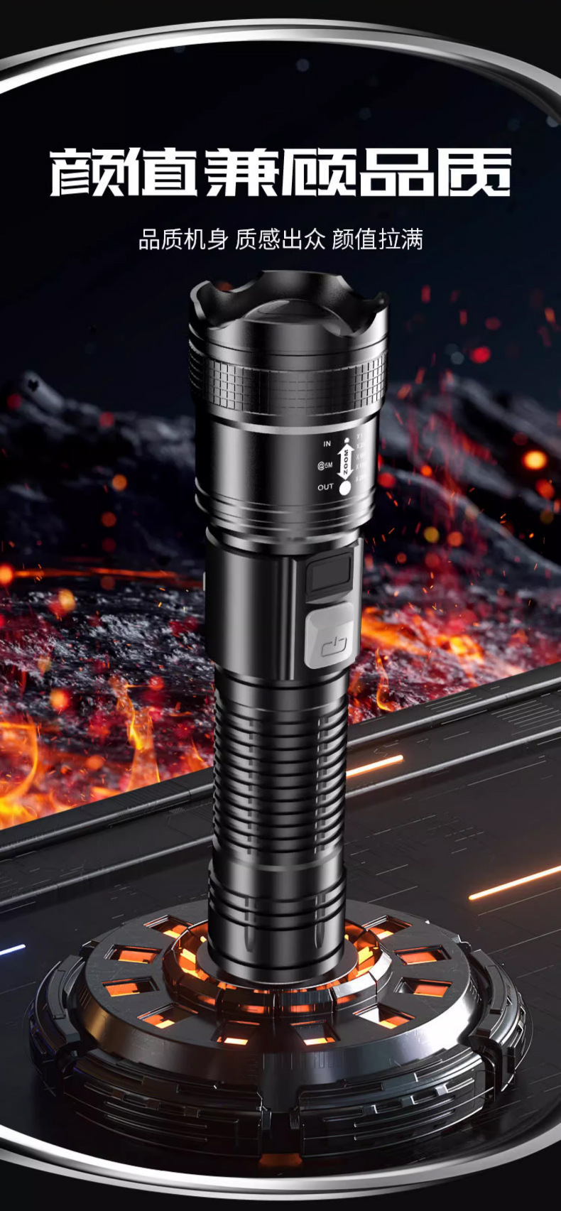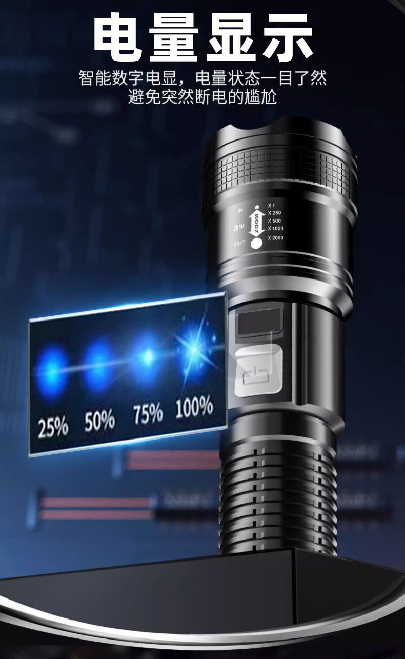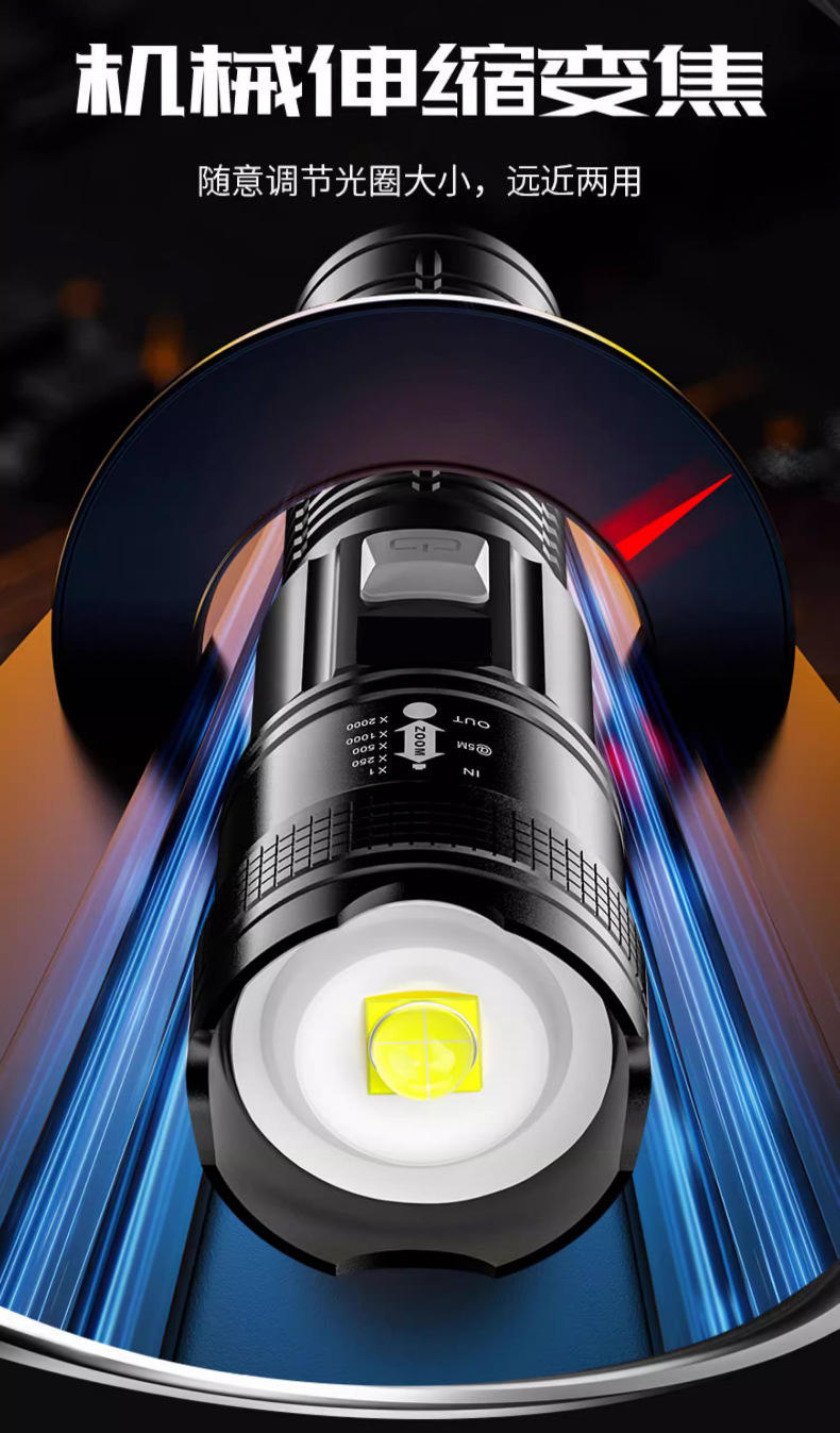 電気商が爆発した戸外強光懐中電灯ズーム多機能携帯充電ハイライト遠射長航続懐中電灯