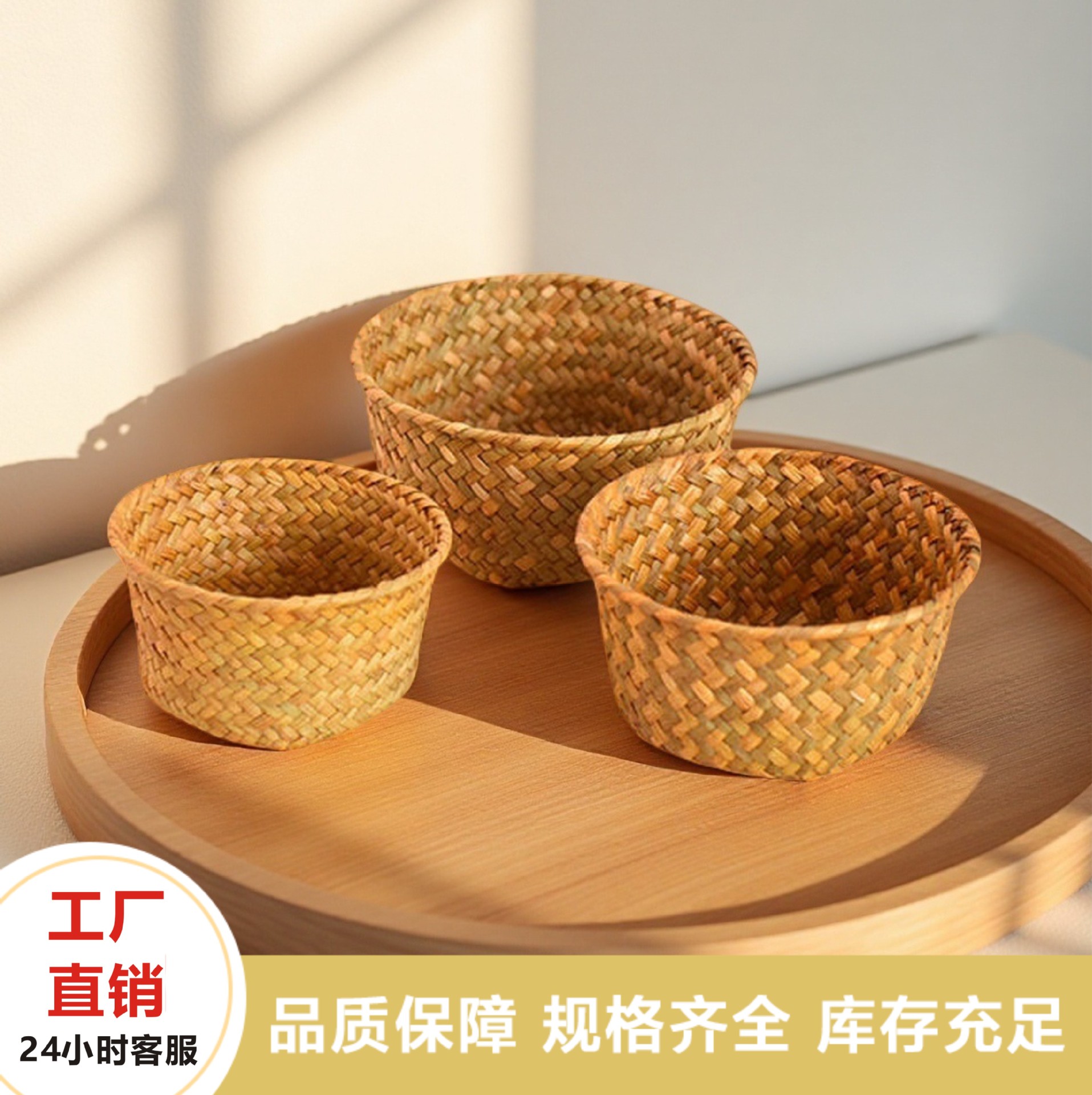 メーカー卸売り円形草編み植木鉢鉢植えバスケットデスクトップ整理化粧品収納バスケット