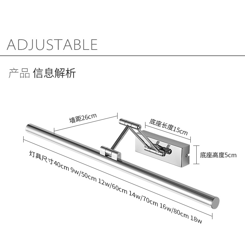 鏡前ライト LED 北欧モダンシンプルバスルームキャビネット マスターベッドルームドレッシングテーブル 伸縮式ミラーキャビネットライト 化粧鏡ライト ウォールライトN
