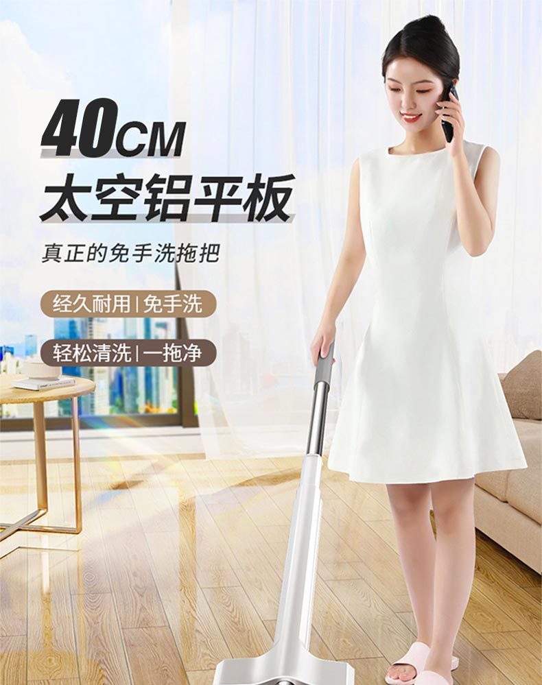 軽量で優れたフラットモップ、家庭用新型モップ、手洗い不要、ワンタッチで掃除完了、静音設計
