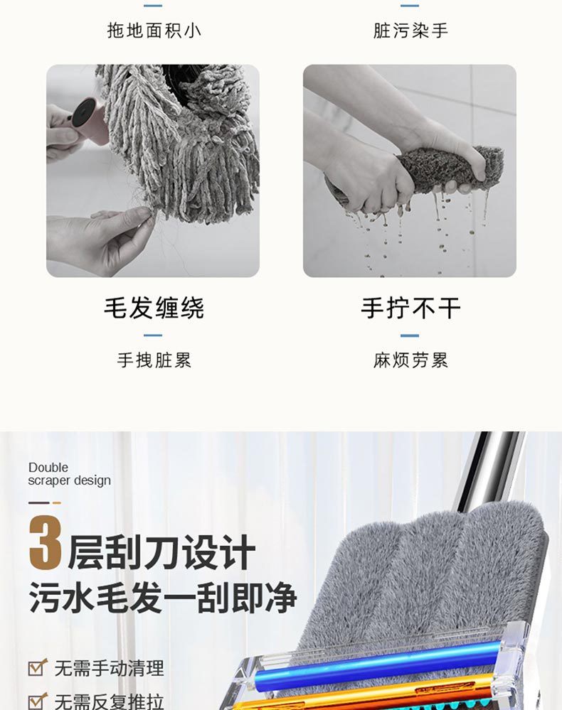 佳帮手2025新款免手洗平板拖把干湿两用拖布拖地一净拖家用神器