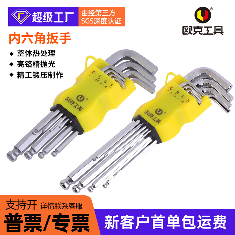 メーカー卸売箱入りクロームメッキマルチ仕様六角レンチセット、超ロングL型ボールヘッドツール付き