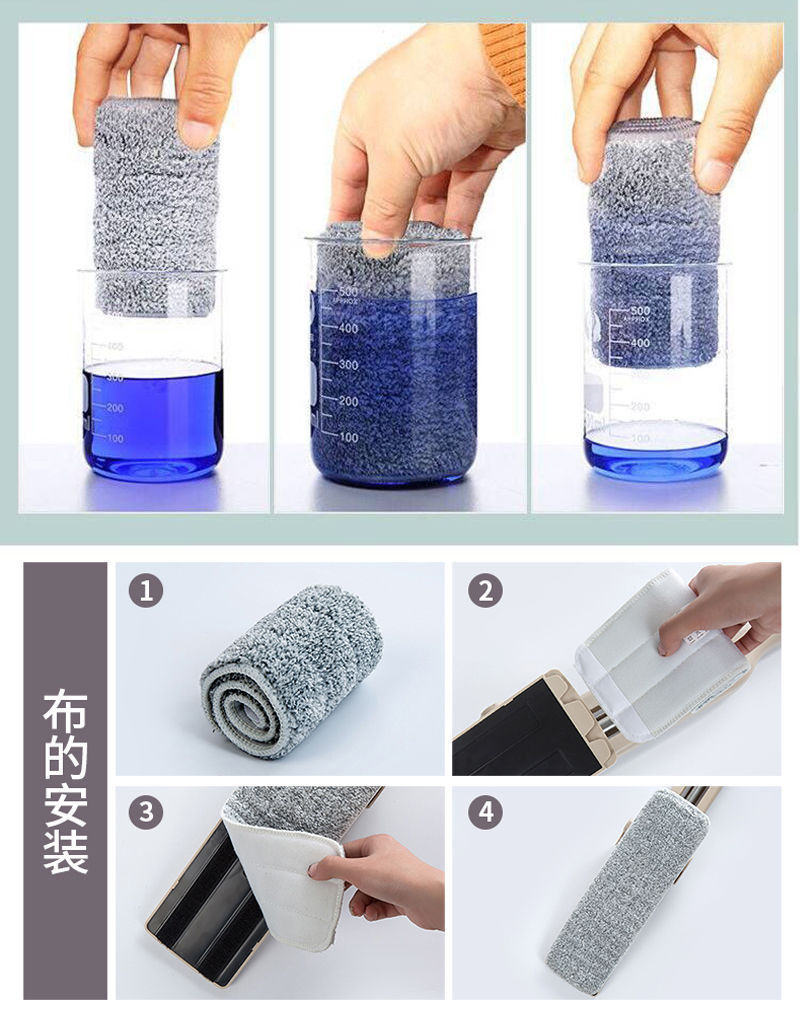 フラットモップ布は布の2つのセットを交換して、手を洗って床を引きずることができない布の怠惰な人はモップの頭を支えて布を引っ張って貼り付けます。