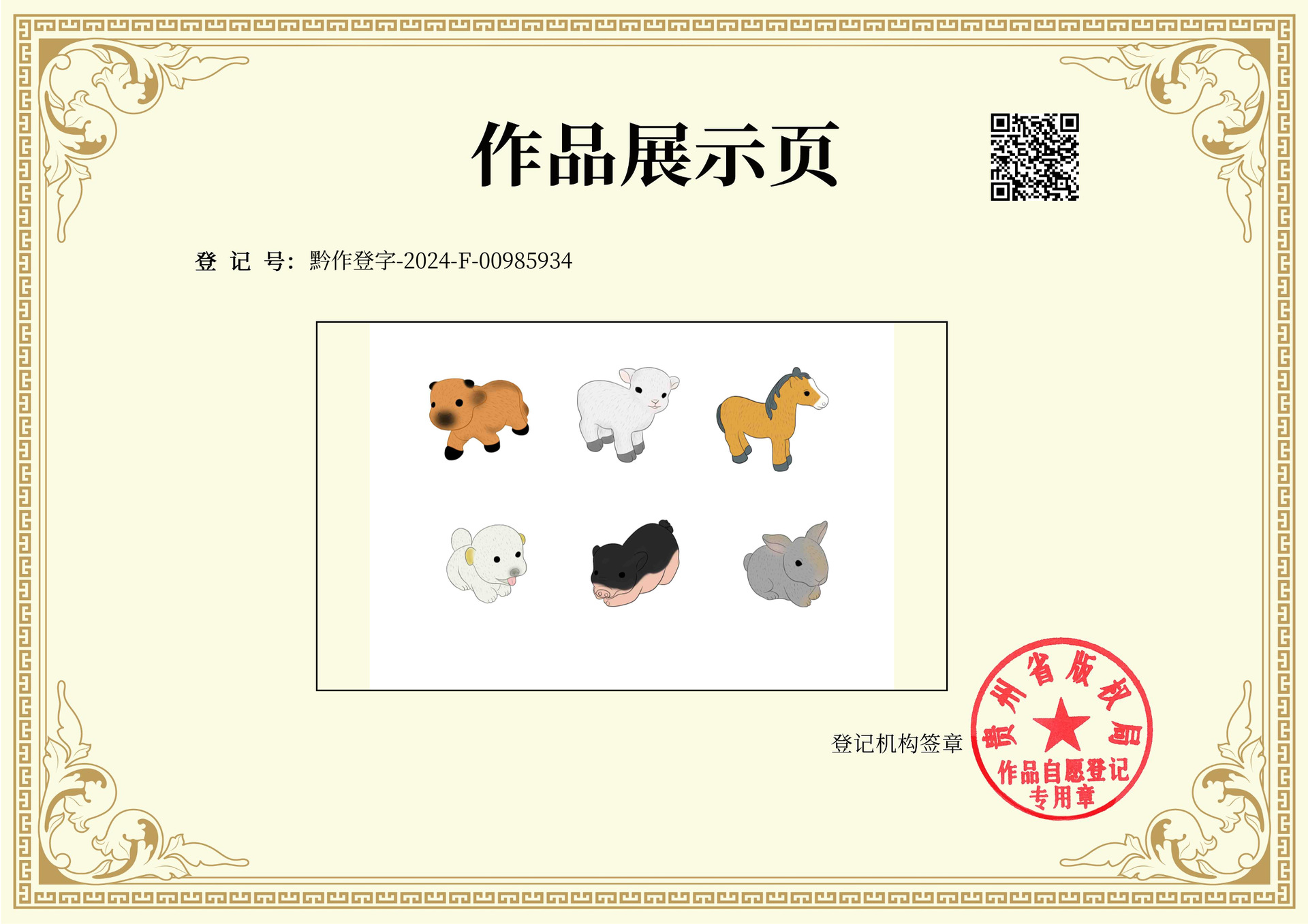 カラー 1番小黄牛,2番ポニー,3番子豚,4番の子犬,5番ウサギ,6番の子羊