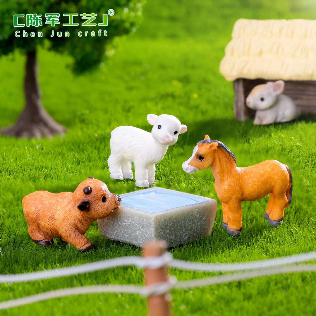微景観創意牛羊犬小動物田園農場造景diy装飾品部品ミニ置物