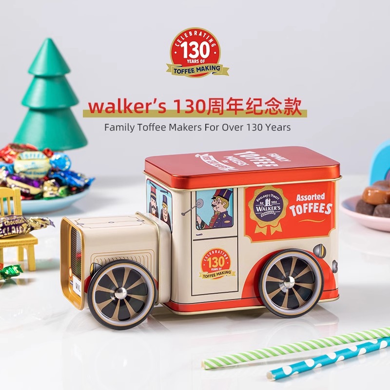 ウォルクスイギリス輸入太妃糖130周年小型自動車アルミ缶記念金児童お土産158g