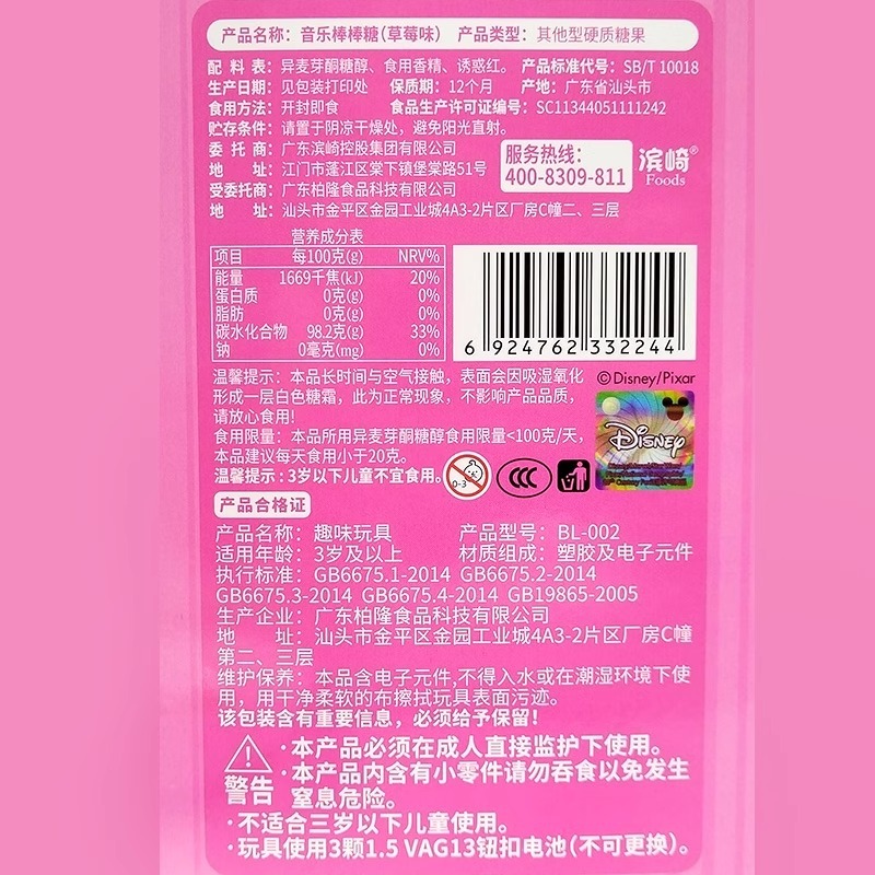 卡通正版授权音乐棒棒糖混合口味水果硬糖休闲零食糖果厂家批发