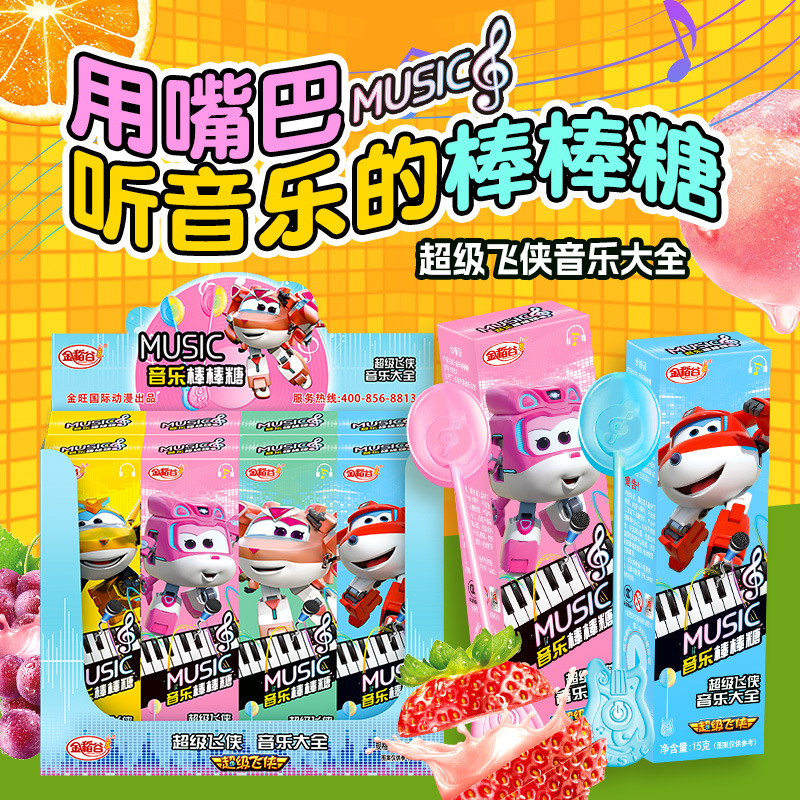 金稲谷新製品15g超飛侠音楽ロリポップ創意趣味声楽子供駄菓子箱入りキャンディー