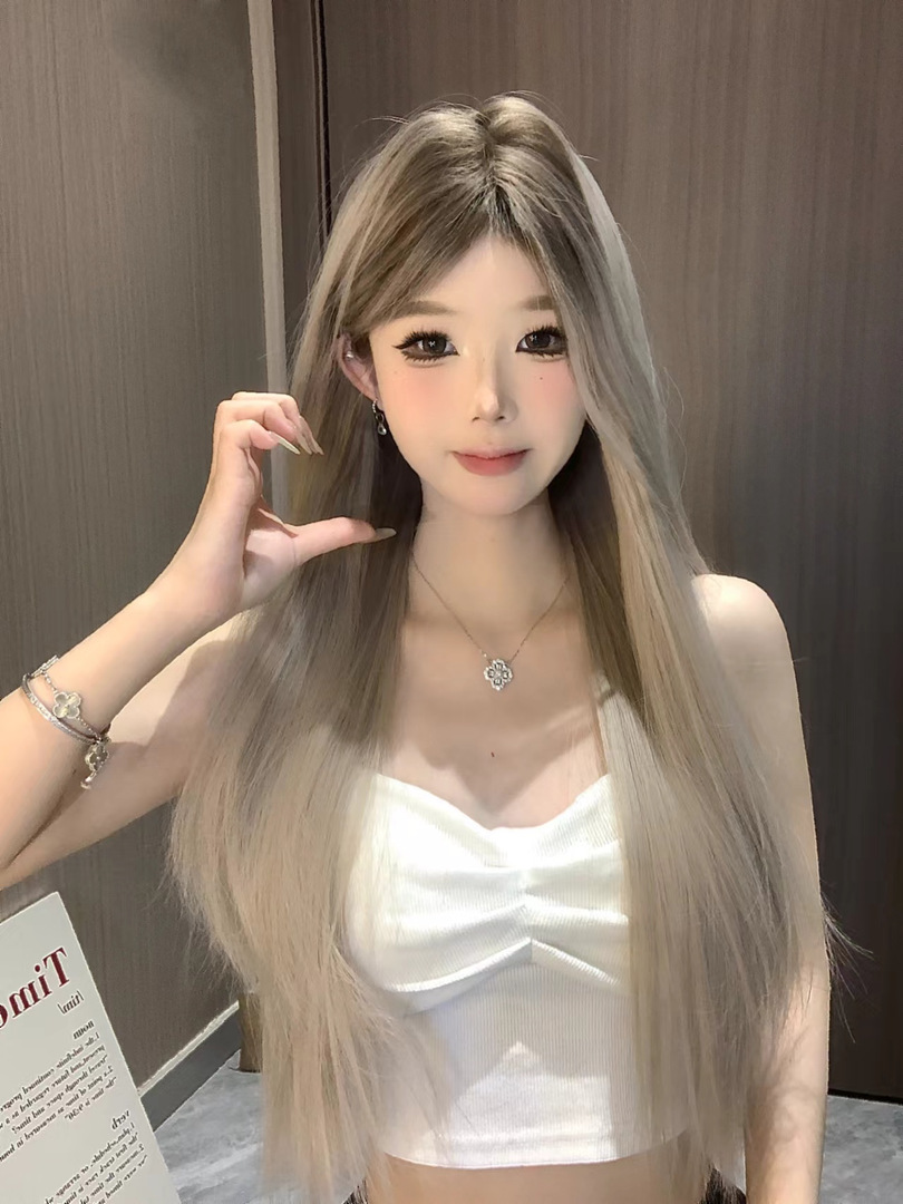 額のレースのかつらの女性の夏の新型はグラデーションの中で長い直髪の甘いクールなギャル風の全頭カバーのかつらを染めます。