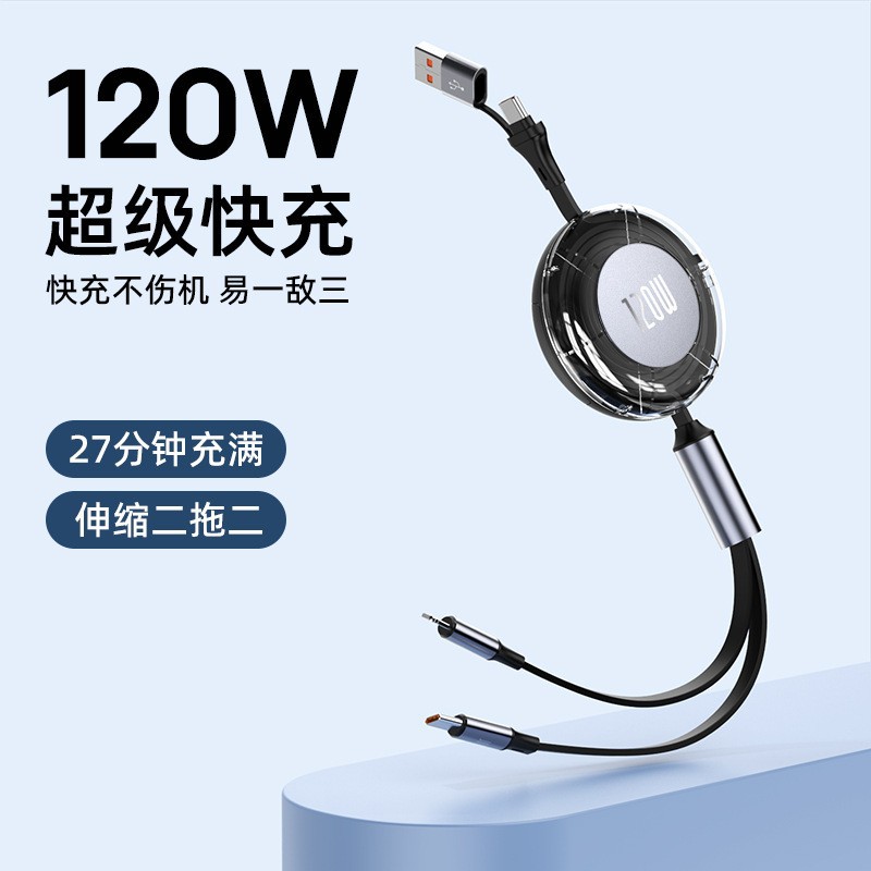 120W透明格納式スリーインワン充電ケーブル、Android Huawei Apple 6Aオレンジヘッド高速充電データケーブルに適しています