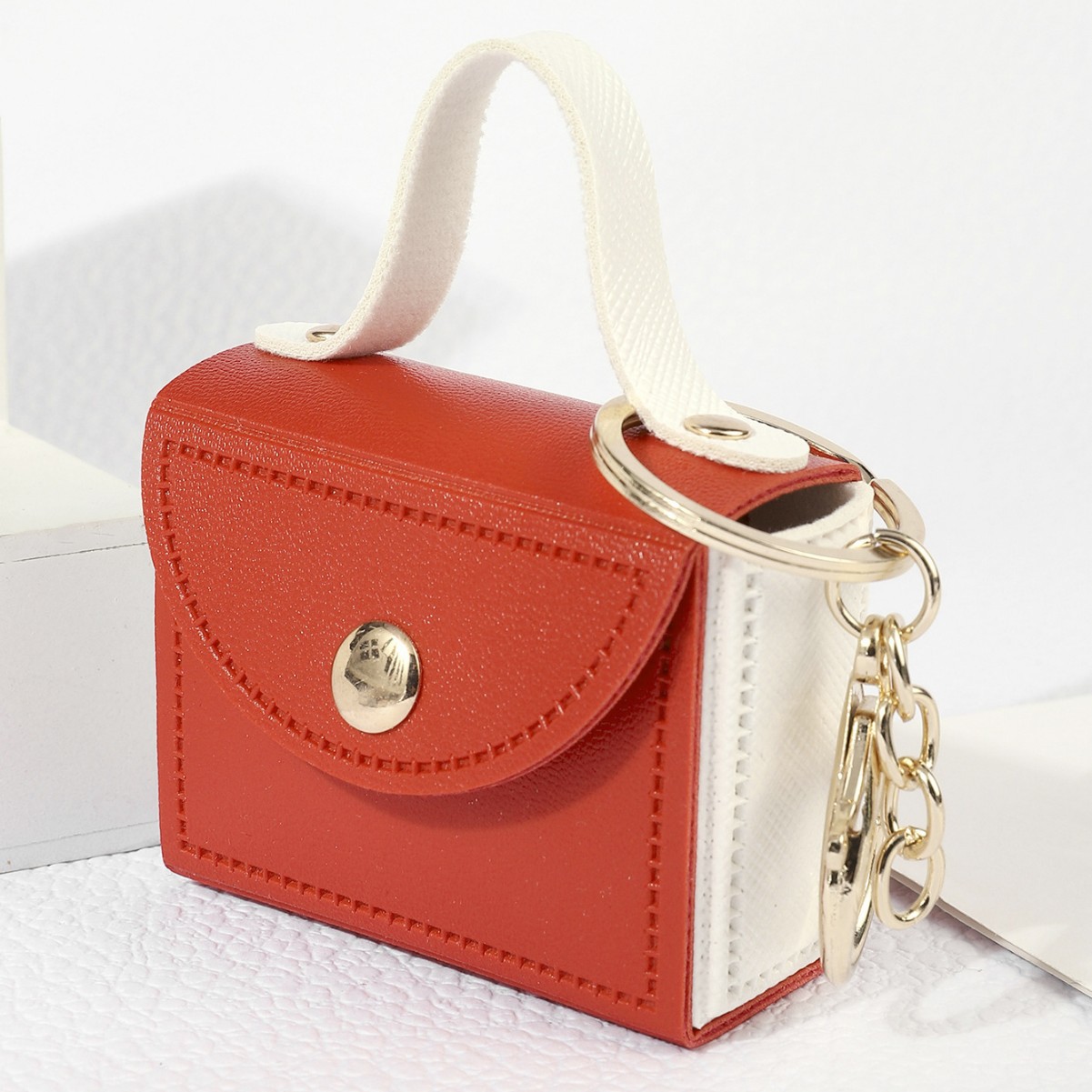 拼色小方包钥匙扣礼品PU皮革撞色迷你零钱包饰品汽车包包挂件配饰