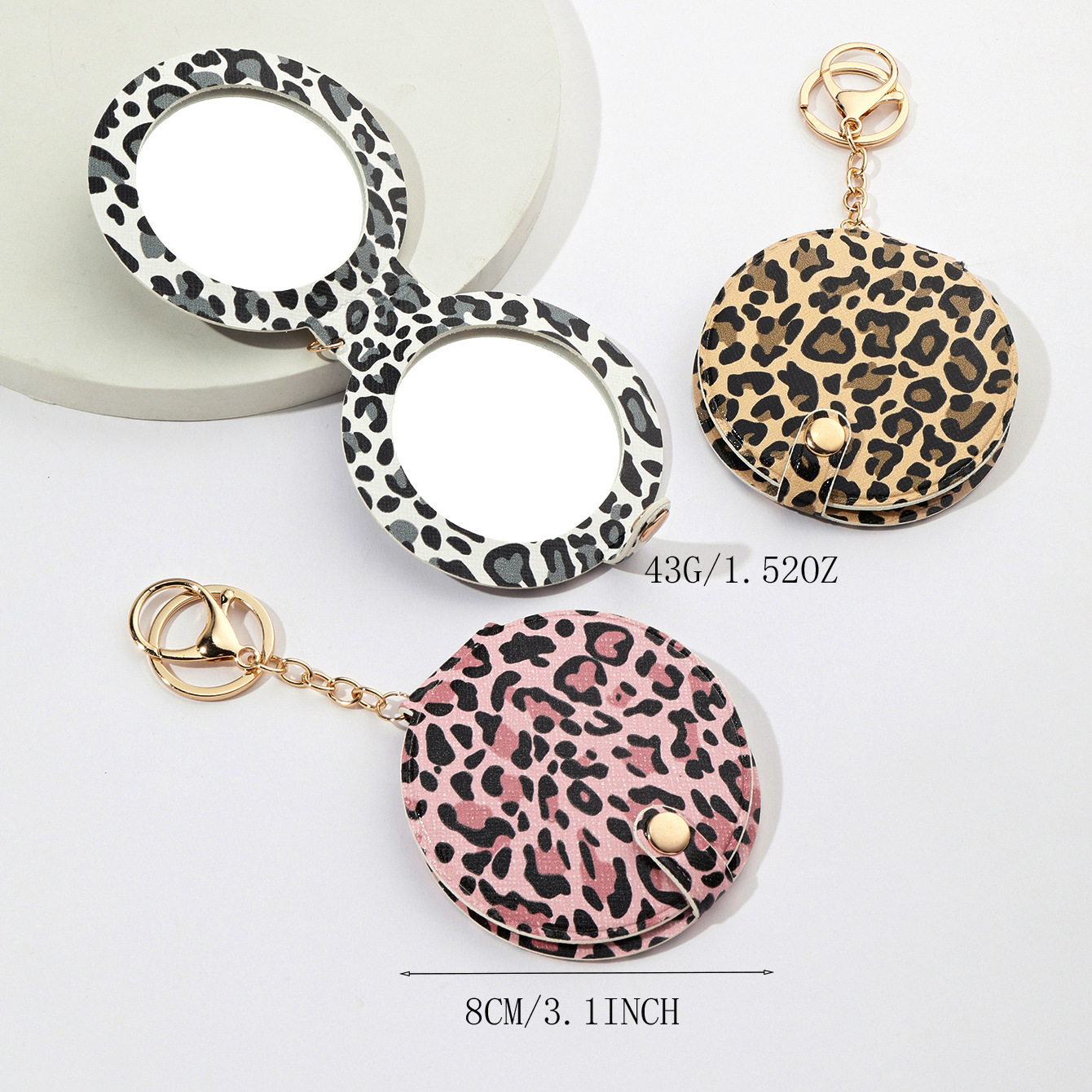 ヒョウ模様の化粧鏡のキーホルダーは、pu革製品の両面鏡を勝手に携帯できます。