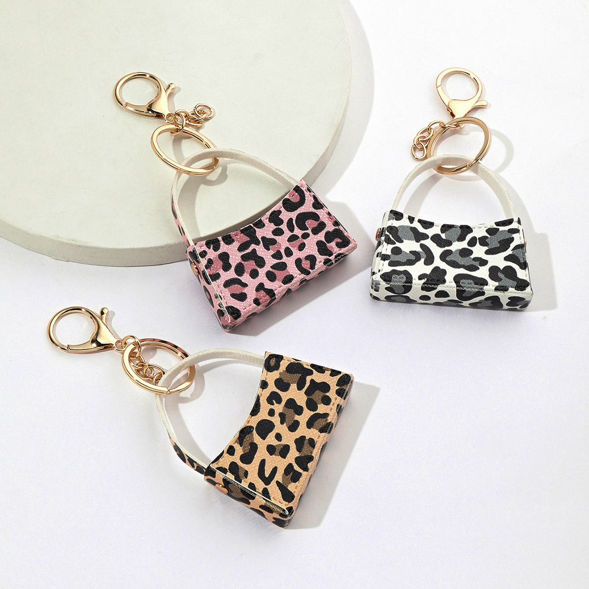 ヒョウ柄の小さい方のカバンのキーホルダーpu革の小銭入れの飾りのクロスボーダーのカバンの自動車の部品のペンダントの生放送の贈り物