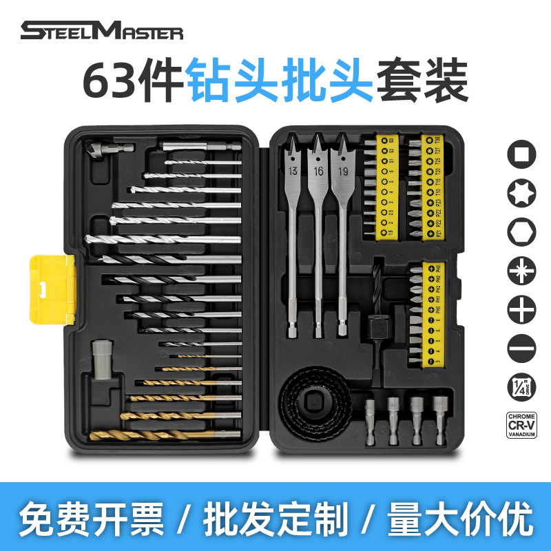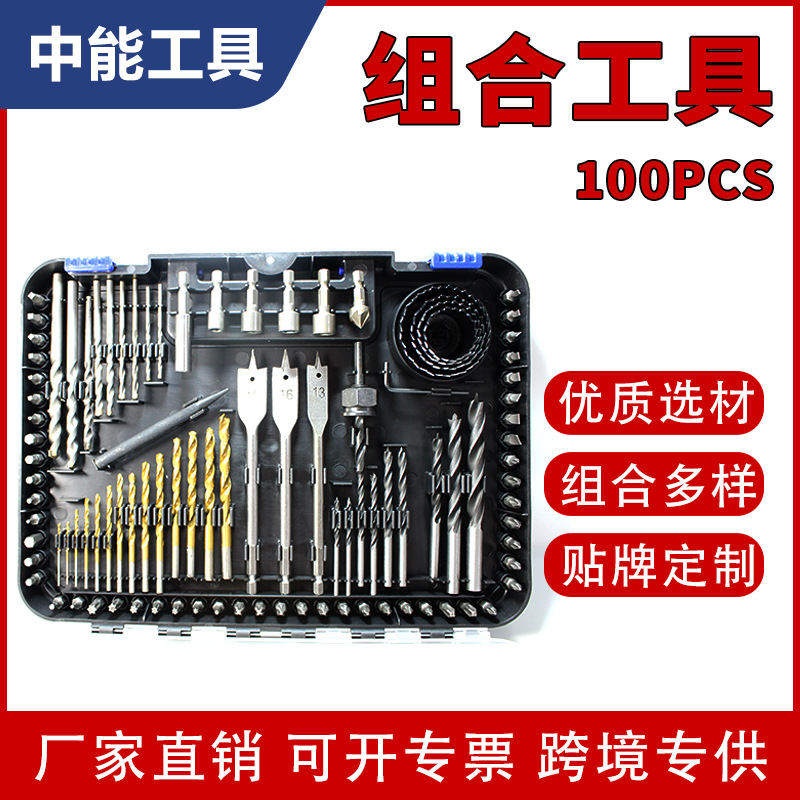 跨境专供68pcs组套100pcs钻头套装麻花钻建工钻木工钻扁钻开孔器
