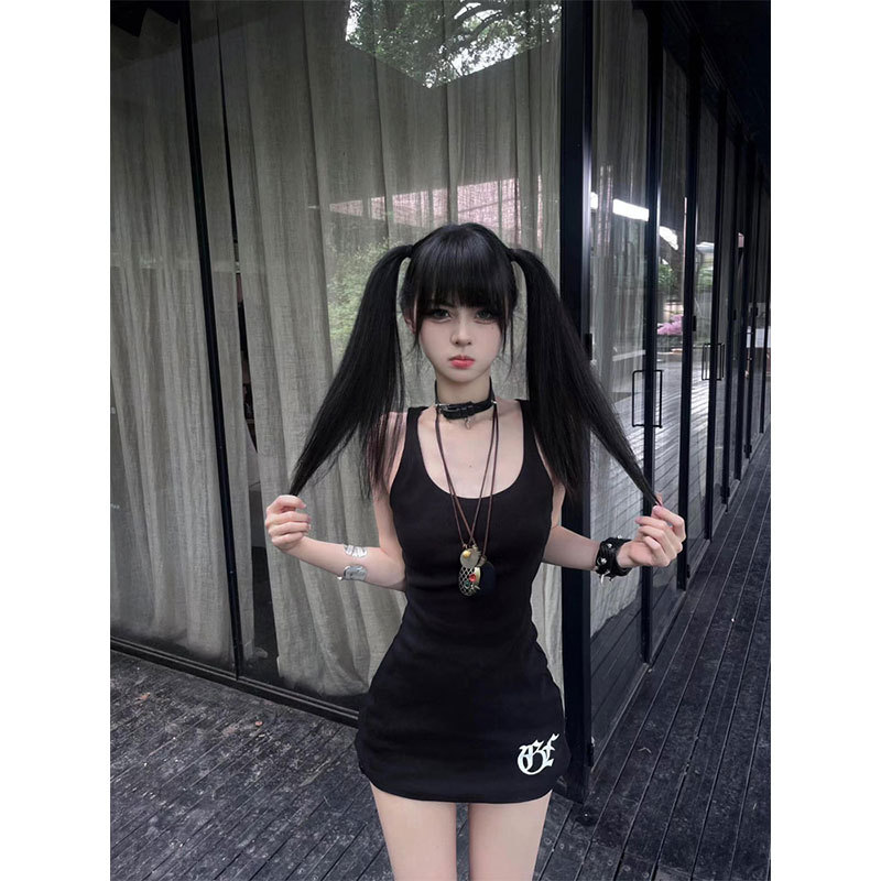 アメリカの高街の黒い袖なしのベスト女性の夏の外着のデザイン感の小さい大衆の甘いクールなギャルは腰の上着を収めます。