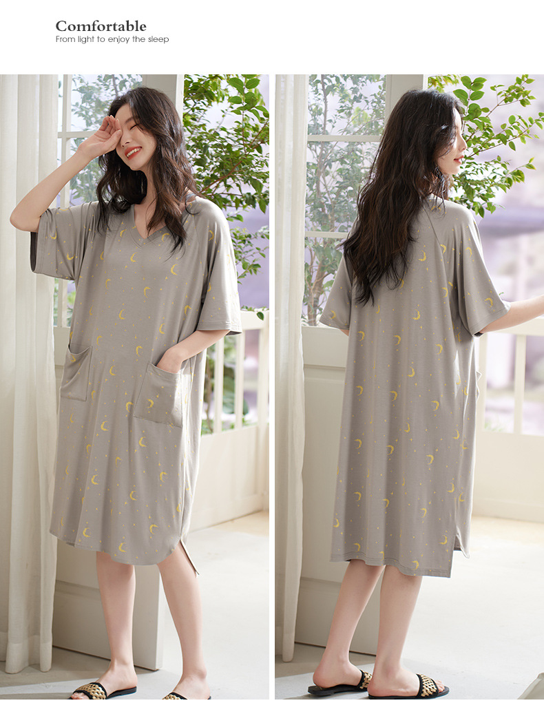 軒の美しい夏の部屋の服の女性の夏の頭のvネックの半袖のモーダルの中でスカートは中でスカートのパジャマを着ることができます。