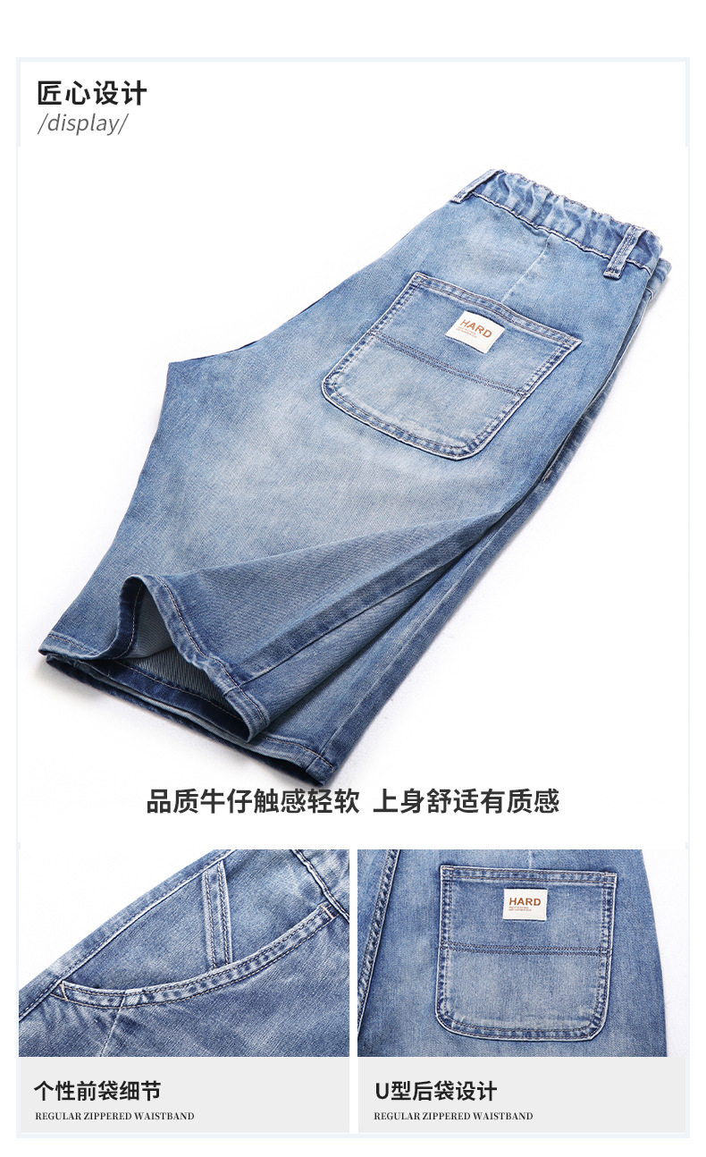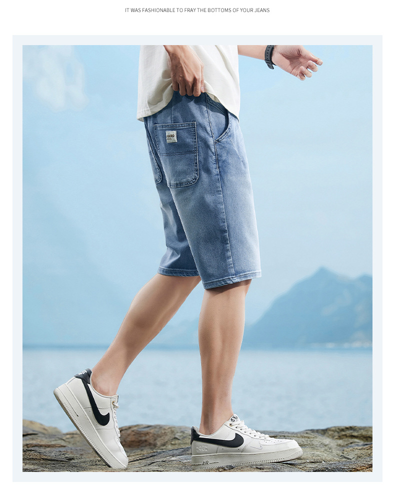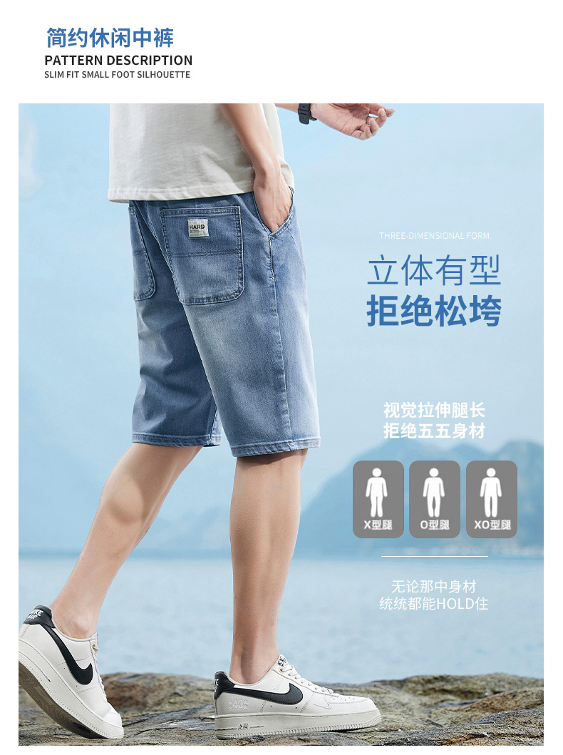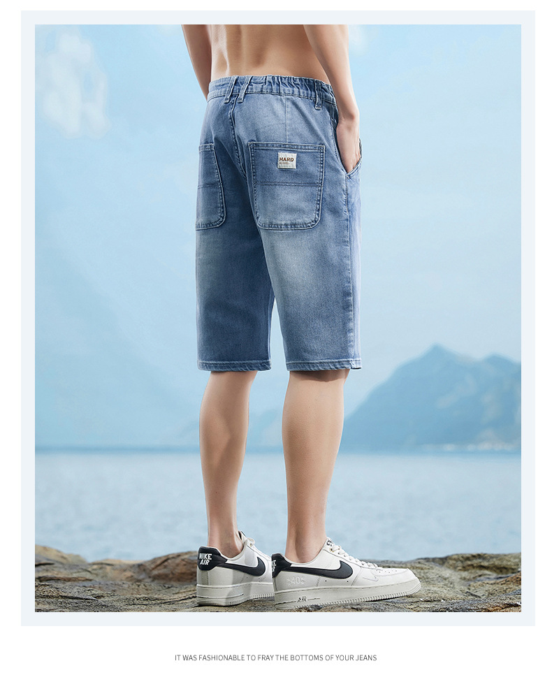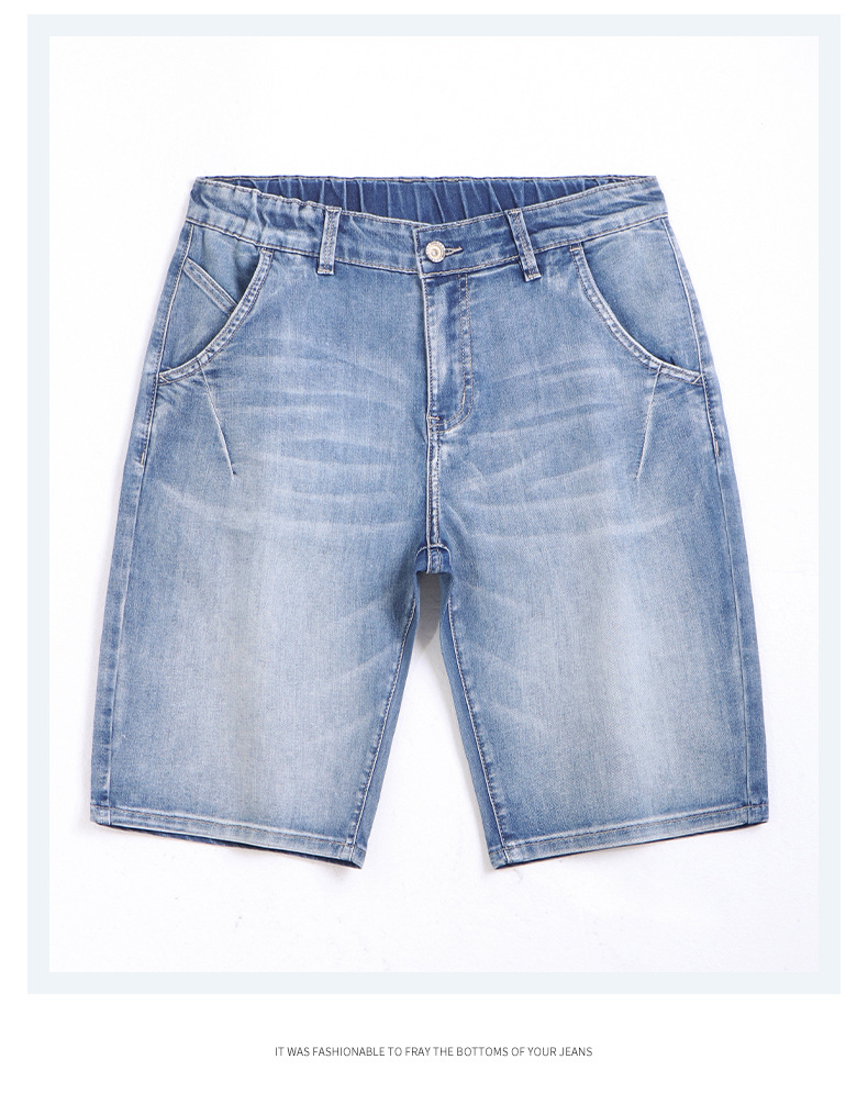 6095-3 | 大きいサイズのメンズ夏の新商品の薄いデニムの半ズボンの男性の百合の弾力の修身の通気性の5分のズボン