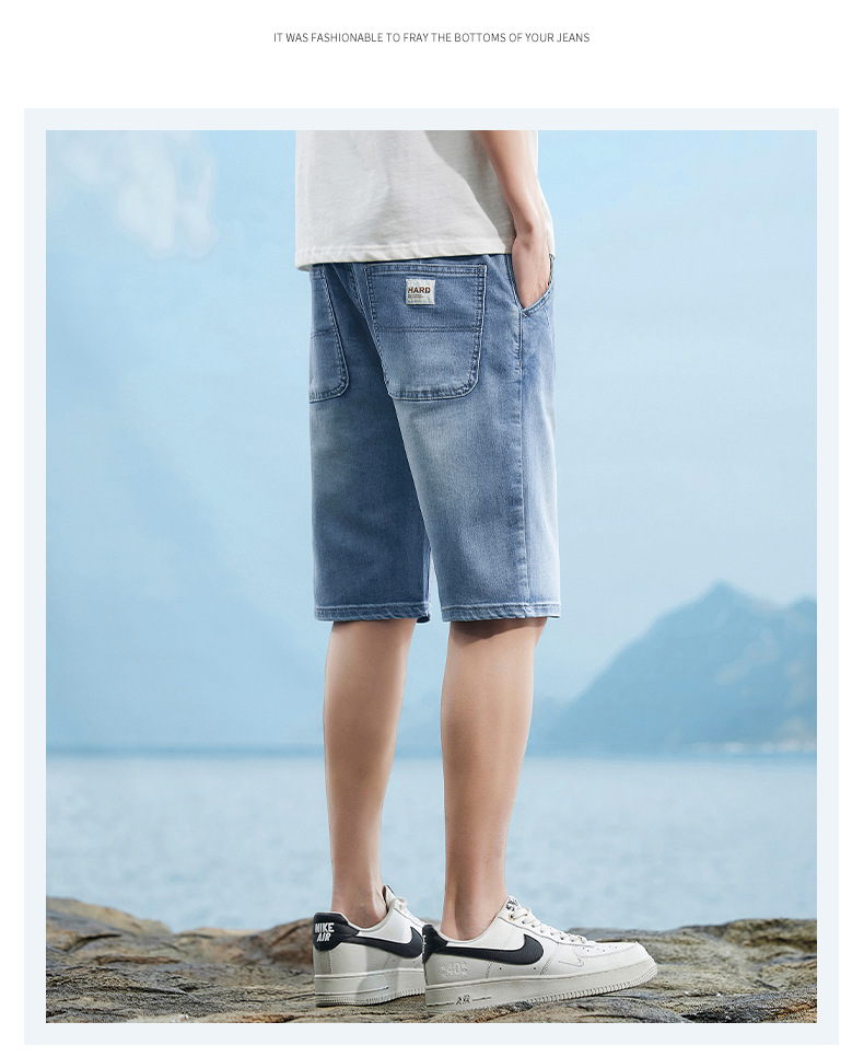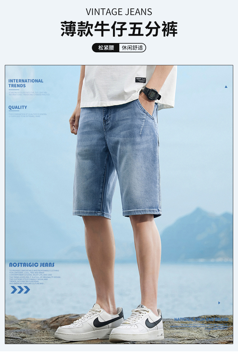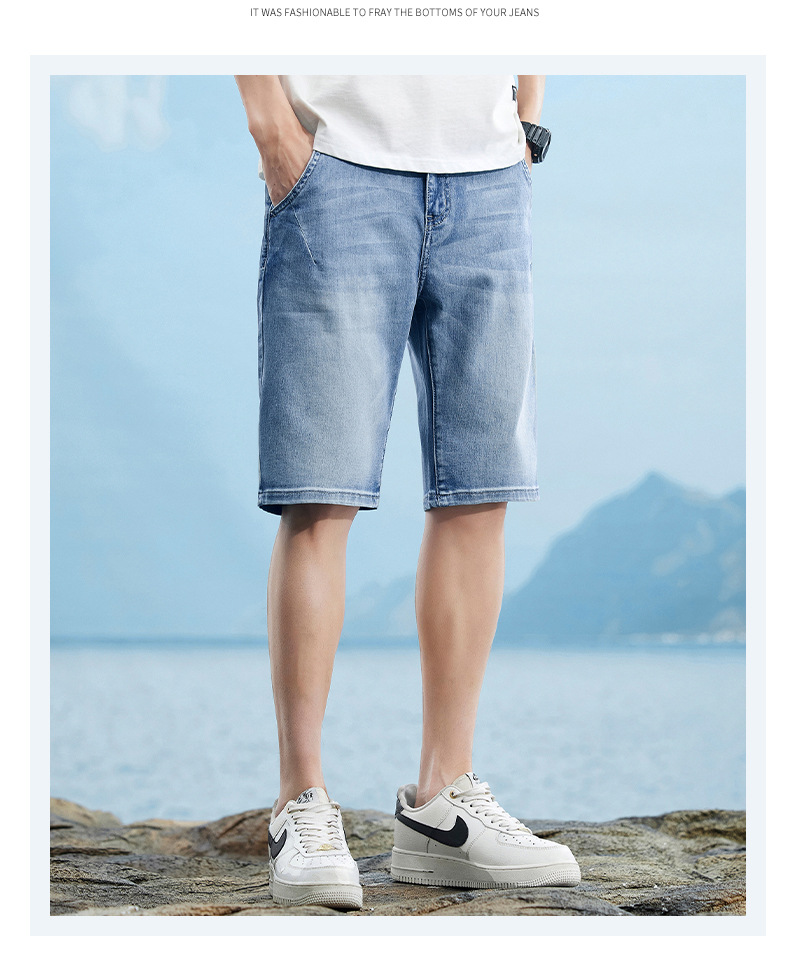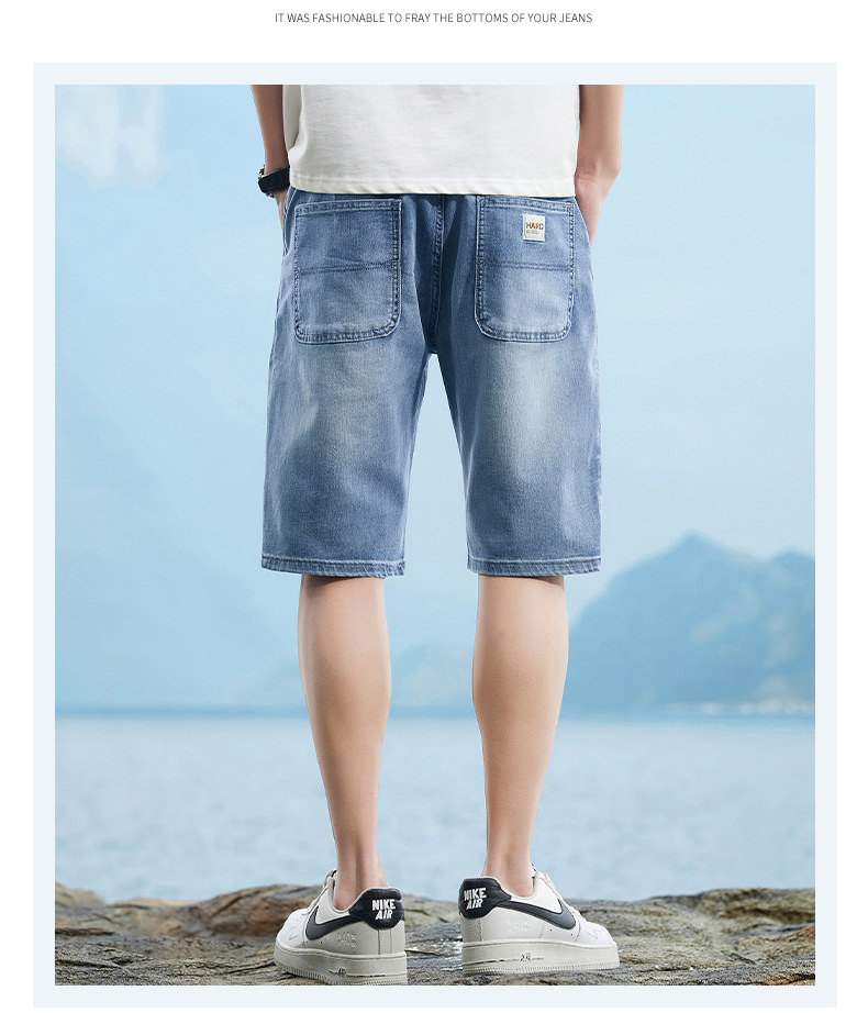 6095-3 | 大きいサイズのメンズ夏の新商品の薄いデニムの半ズボンの男性の百合の弾力の修身の通気性の5分のズボン
