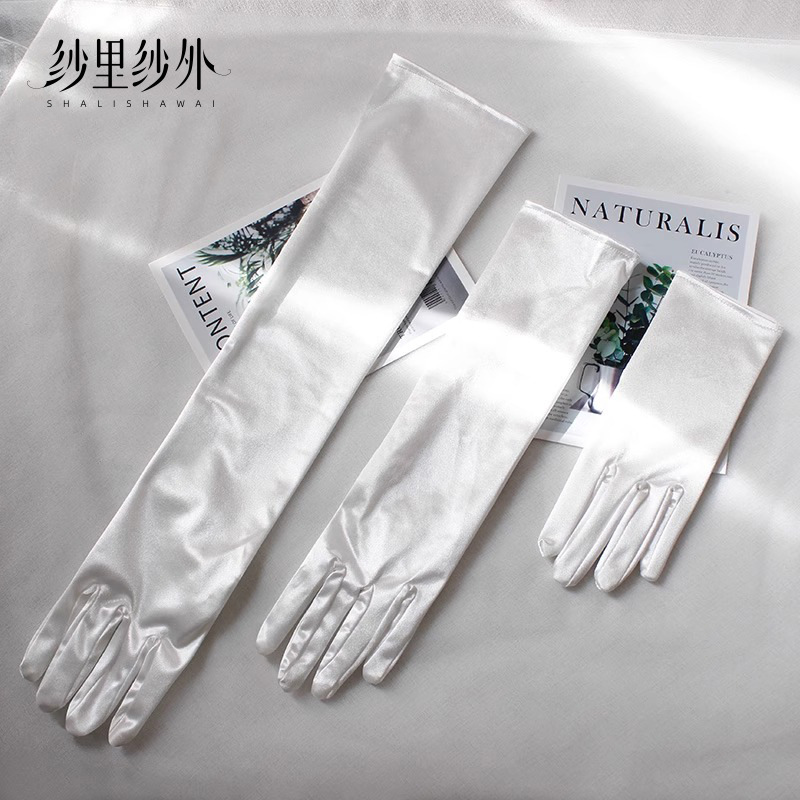 外国貿易クロスボーダー新婦サテンの色丁手袋の白い黒いウェディングドレスの短いタイプの中で長いのは肘のタイプのスパンデックスを超えます。