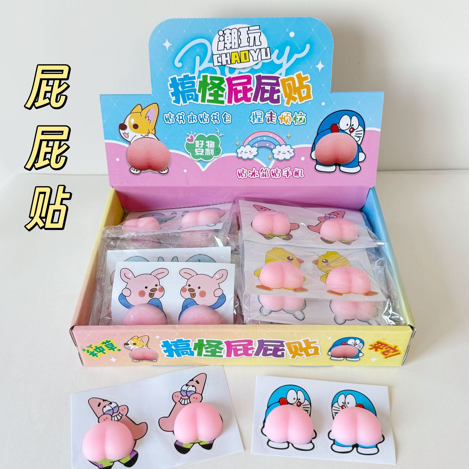 新款搞怪屁屁贴 防刮蹭3D立体屁屁贴纸小学生减压玩具卡通捏捏乐