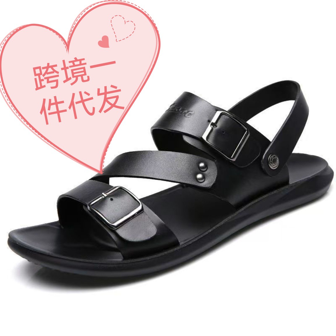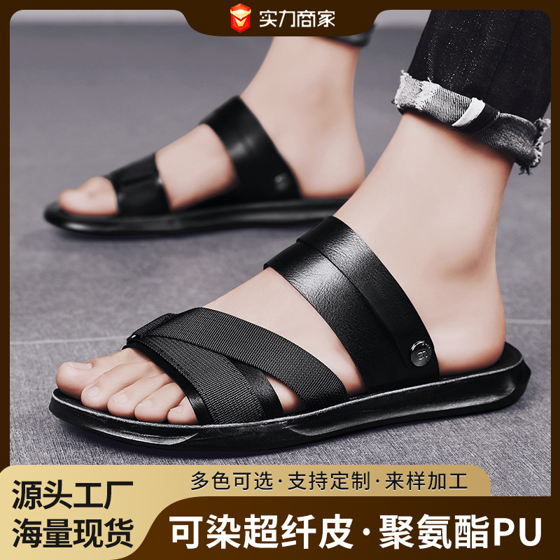 2025新款男士拖鞋外贸批发夏季软底时尚皮面交叉露趾大码休闲凉鞋