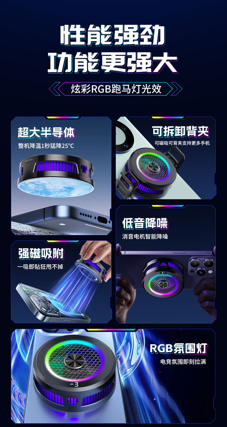 手机散热器双核半导体结冰制冷器背夹游戏电竞王者吃鸡直播磁吸