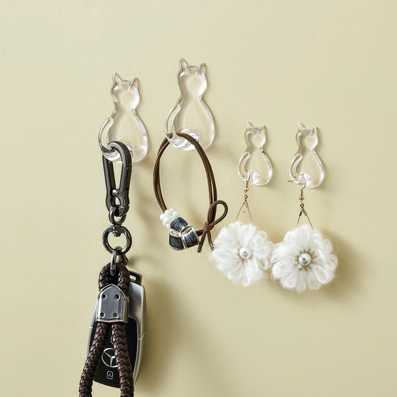 和風漫画猫の尻尾型フック 穴あけ不要 透明粘着フック キッチン 浴室 シンプル 可愛い おしゃれなフック 在庫あり
