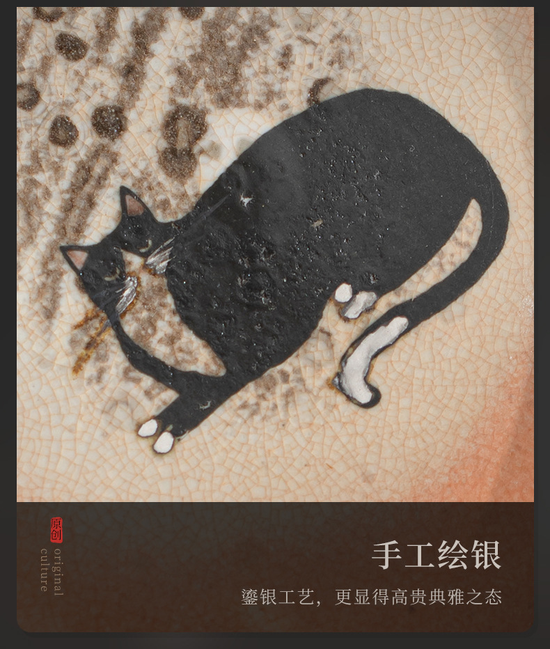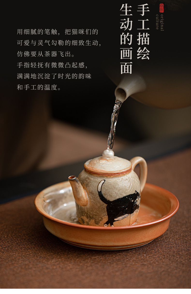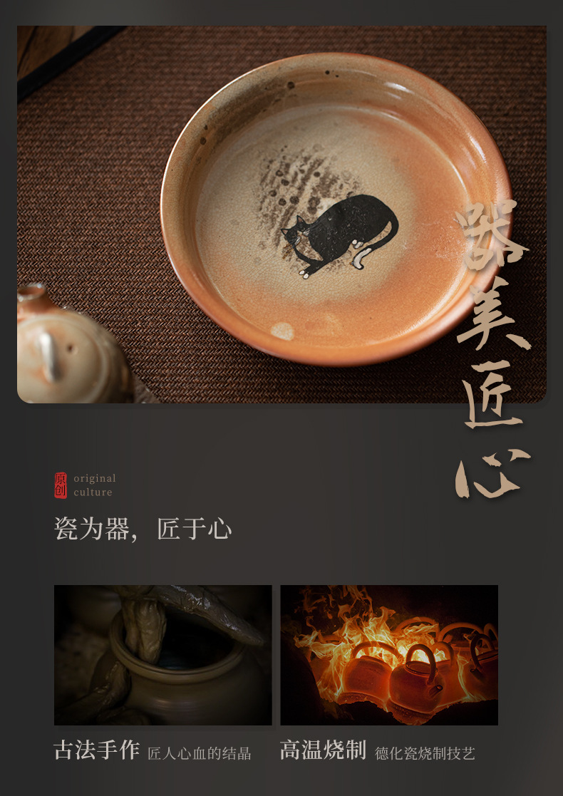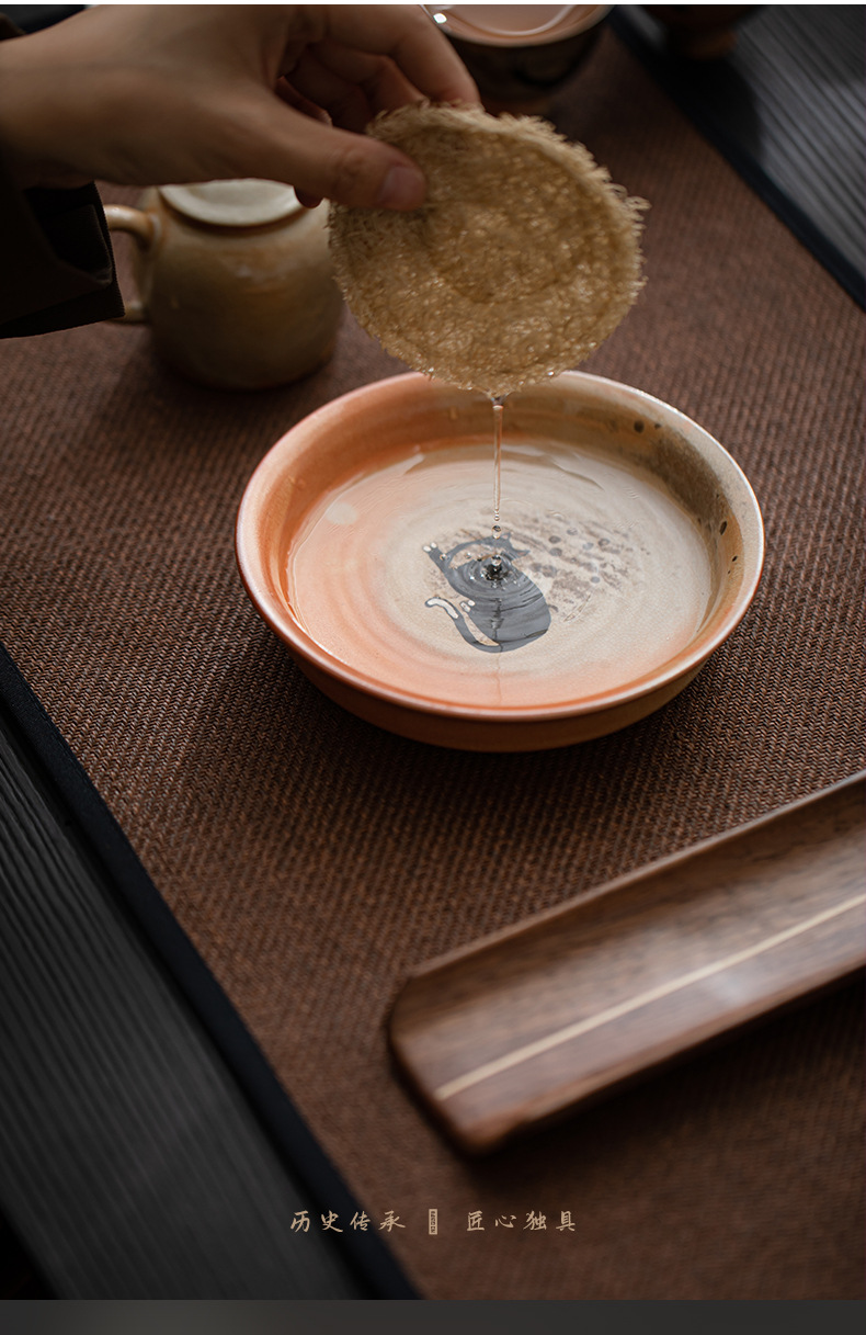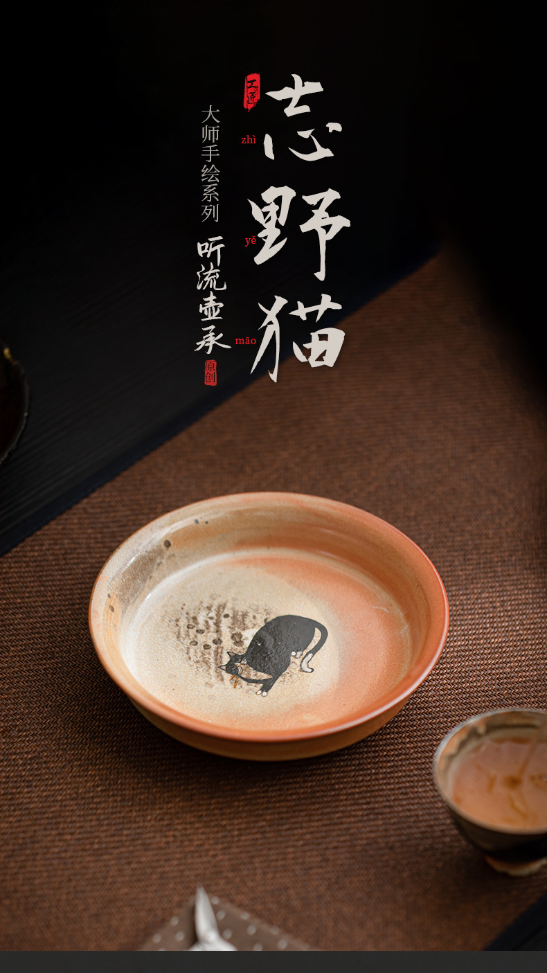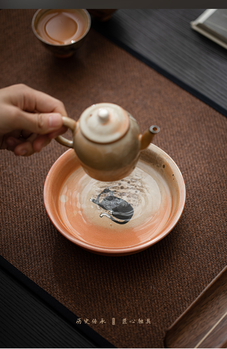 創意手描き志野猫聴流壺承茶承壺托陶磁器急須隔熱マット茶器部品果物皿トレー
