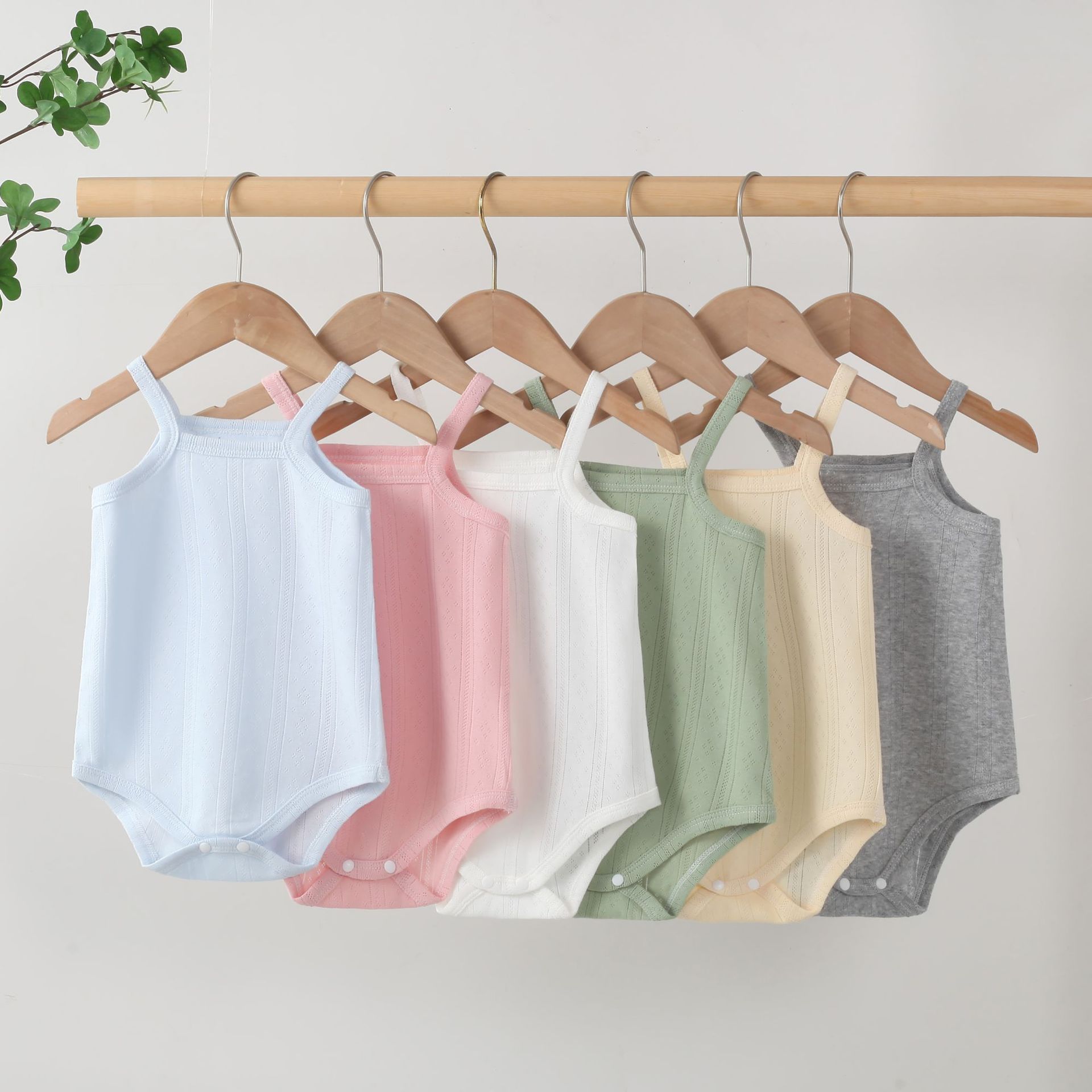 夏の赤ちゃんのストラップのお尻の服のジャカードの骨のない新生児の純綿の薄いタイプの通気性の網の目の三角の服は服を登ります。