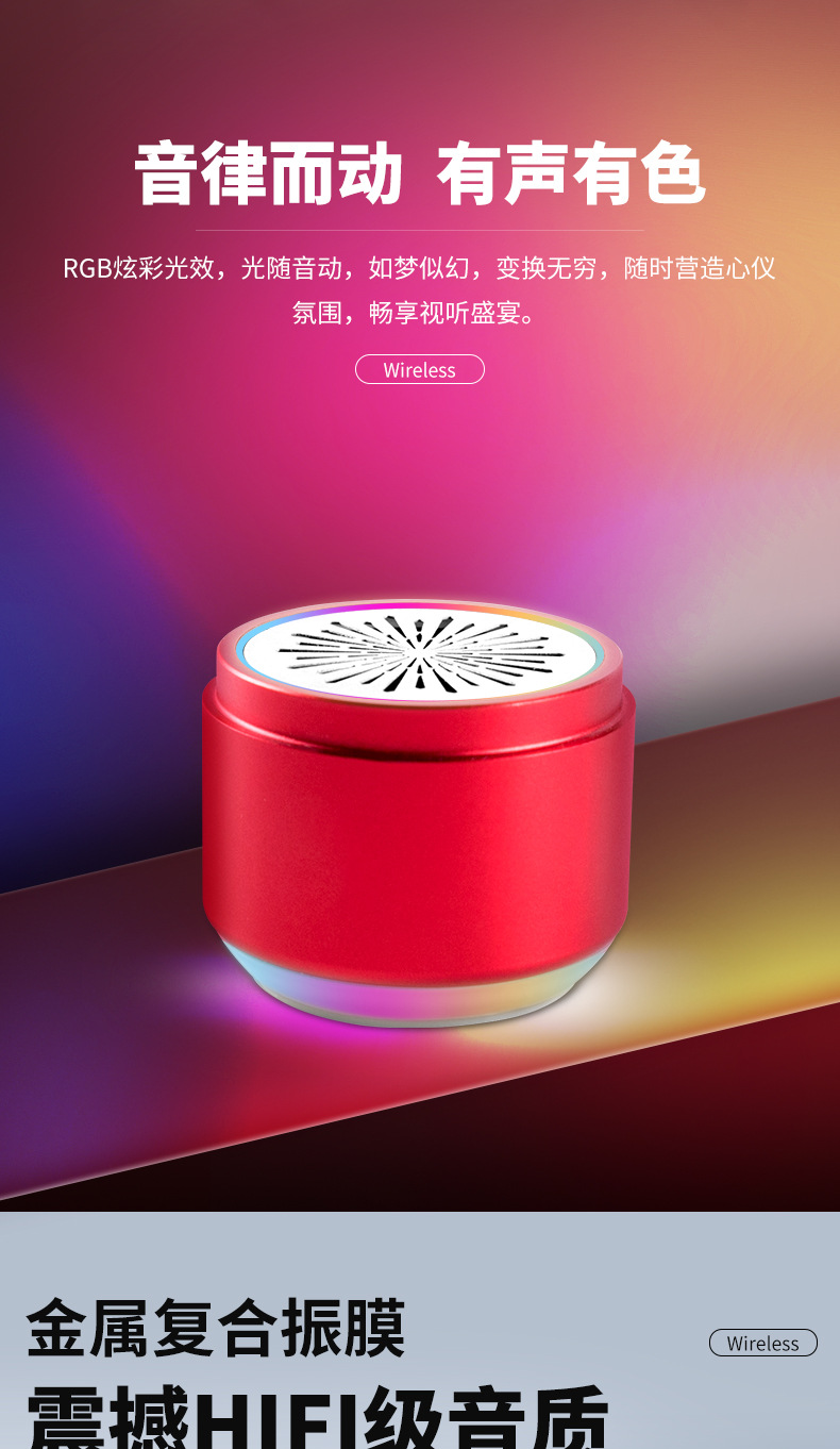クロスボーダー新型ブルートゥーススピーカー高颜値雰囲気ランプ屋外カードサブウーファー小音響ミニ携帯音響
