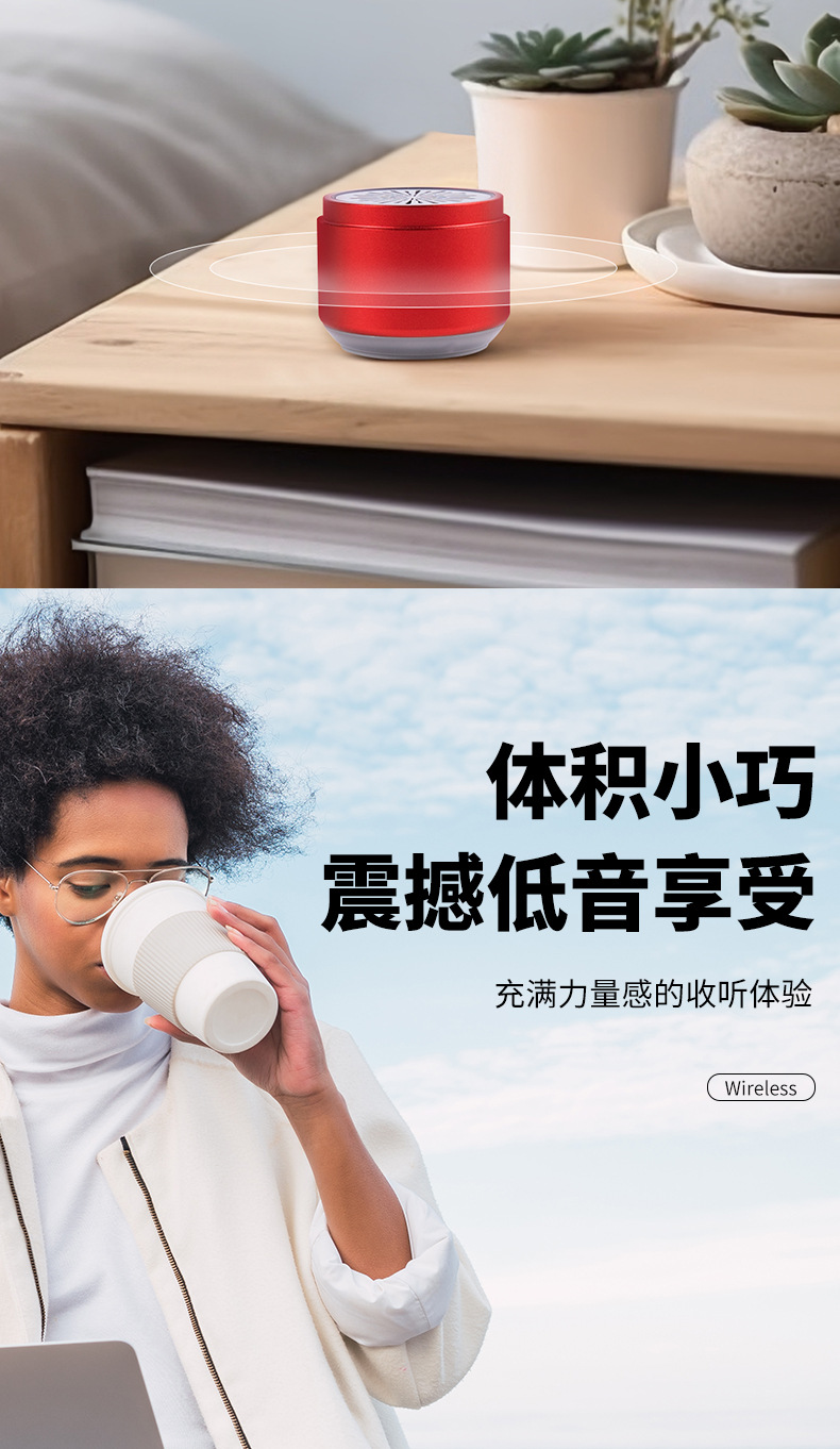 BluetoothスピーカーB62は、TWS対応で、屋外、家庭、車載に使用可能、ポータブルでワイヤレス、大音量、低音、ミニサイズで、越境で人気です。