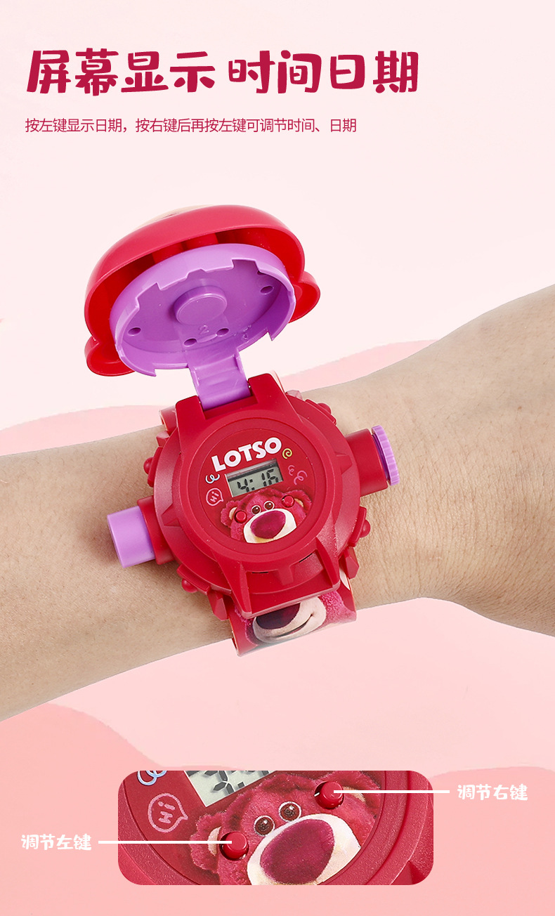 儿童卡通24图翻盖投影电子手表男生女生超人发光手表玩具厂家直销