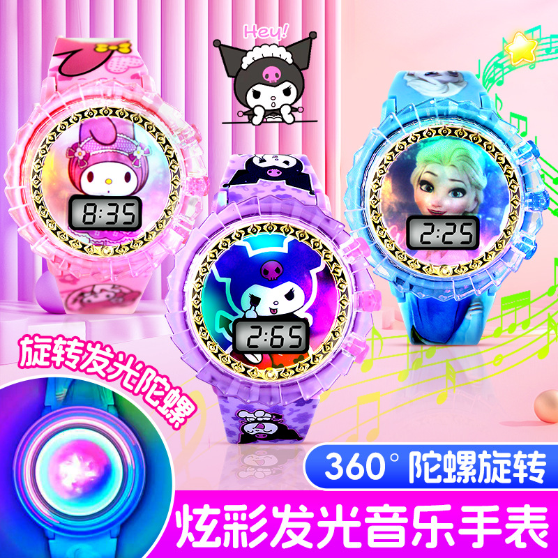 儿童手表女孩可爱三丽鸥玉桂狗库洛米发光音乐卡通电子手表礼物