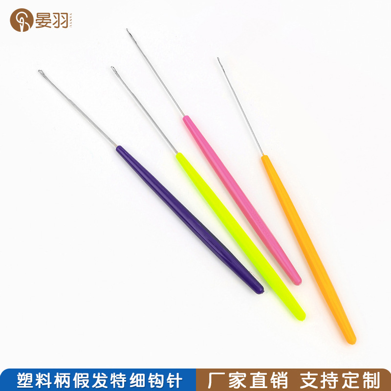 カラーのプラスチックの柄の特細は舌のかぎ針の手のdiyのかつらの髪の接続の3通の針の編み物のツールの卸売りを持ちます。