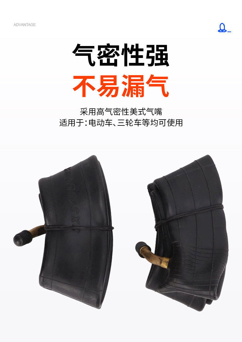 電動三輪車・バイク用インナーチューブ、厚みのある天然ゴム、加重設計、耐久性と耐摩耗性、バッテリーカー汎用