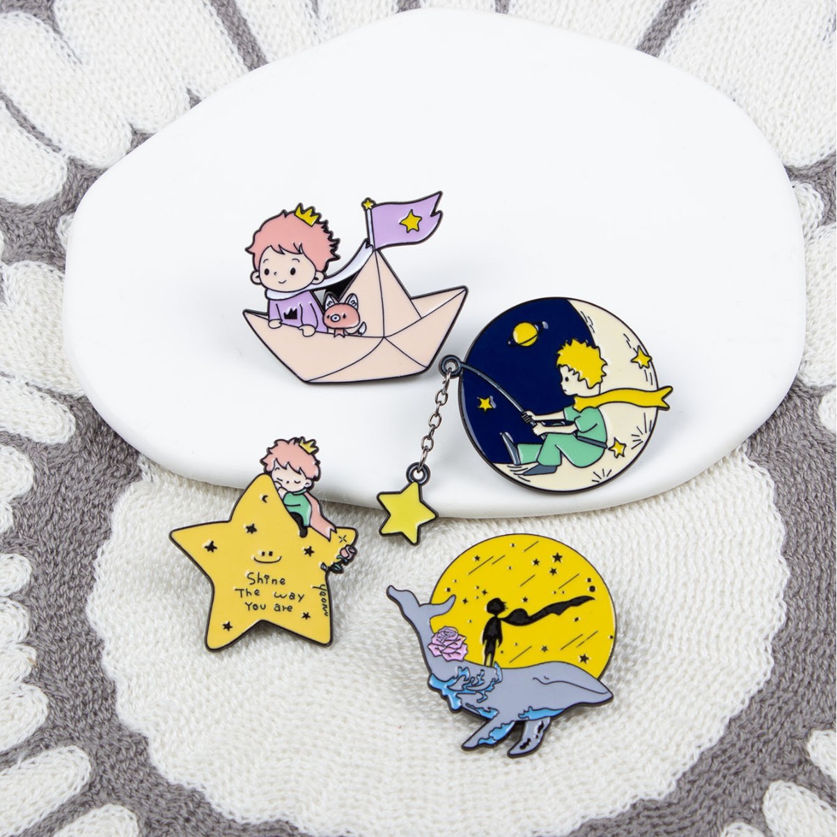 かわいい漫画星の王子さまスターおとぎ話ブローチムーン美しいバッジローズ装飾宇宙工場直販