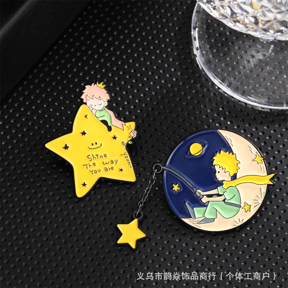 童話シリーズアニメ塗装ブローチかわいい星の王子バッジ趣味月宇宙装飾ペンダント