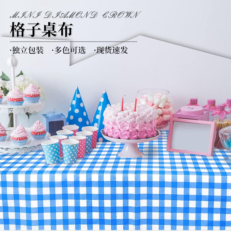 一次性长方形桌布蓝白格子防水桌布户外野餐厨房假日聚会装饰用品