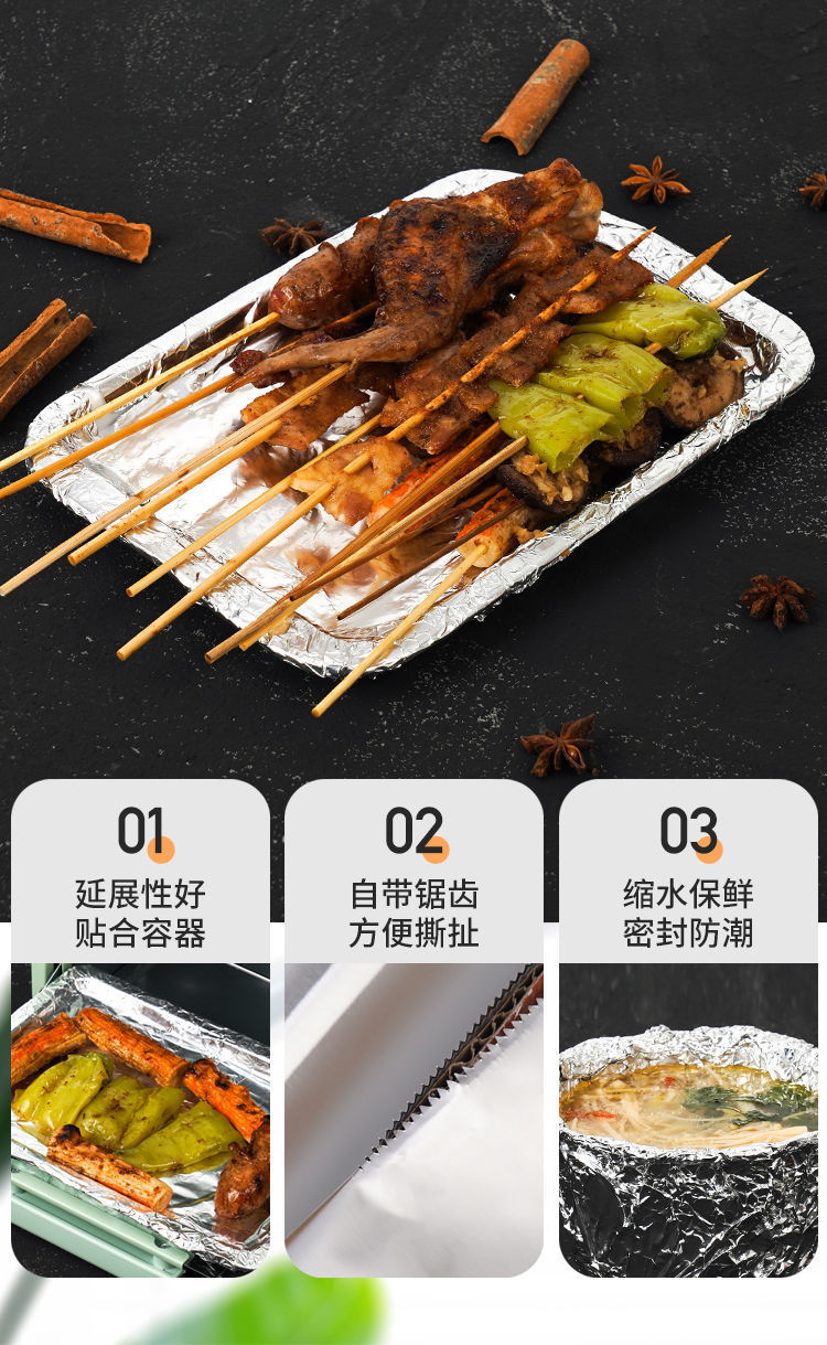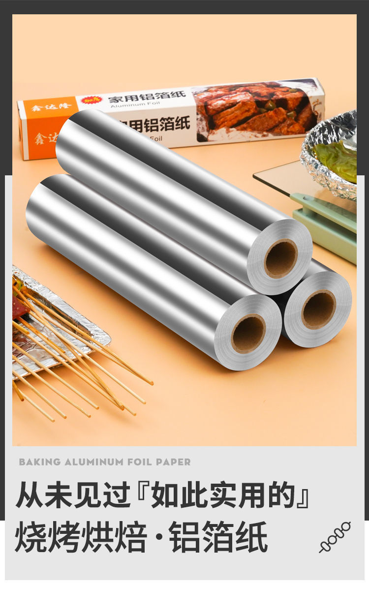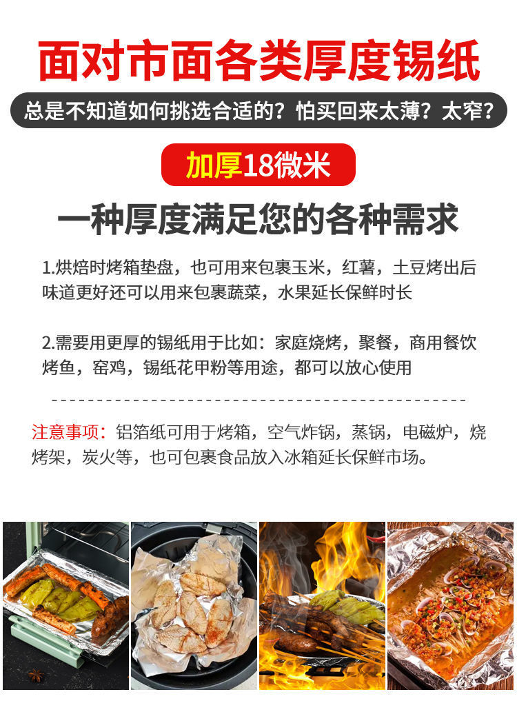 锡纸铝箔纸食品级加厚免洗耐高温空气炸锅烤箱专用纸家用卷装铝箔