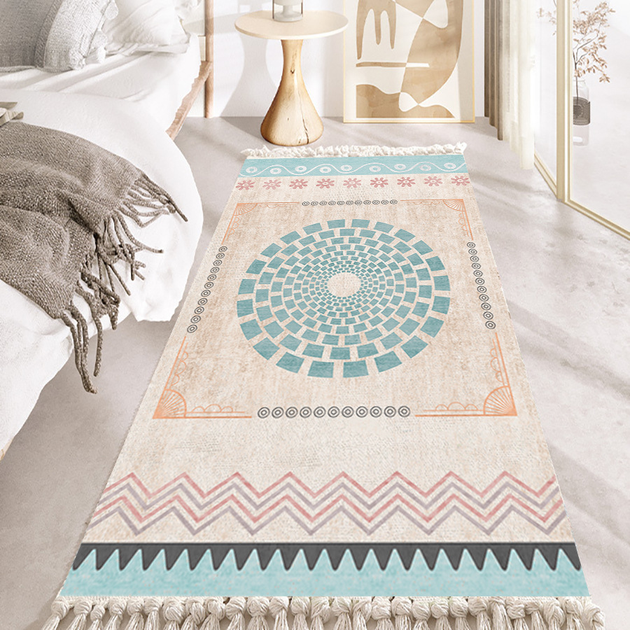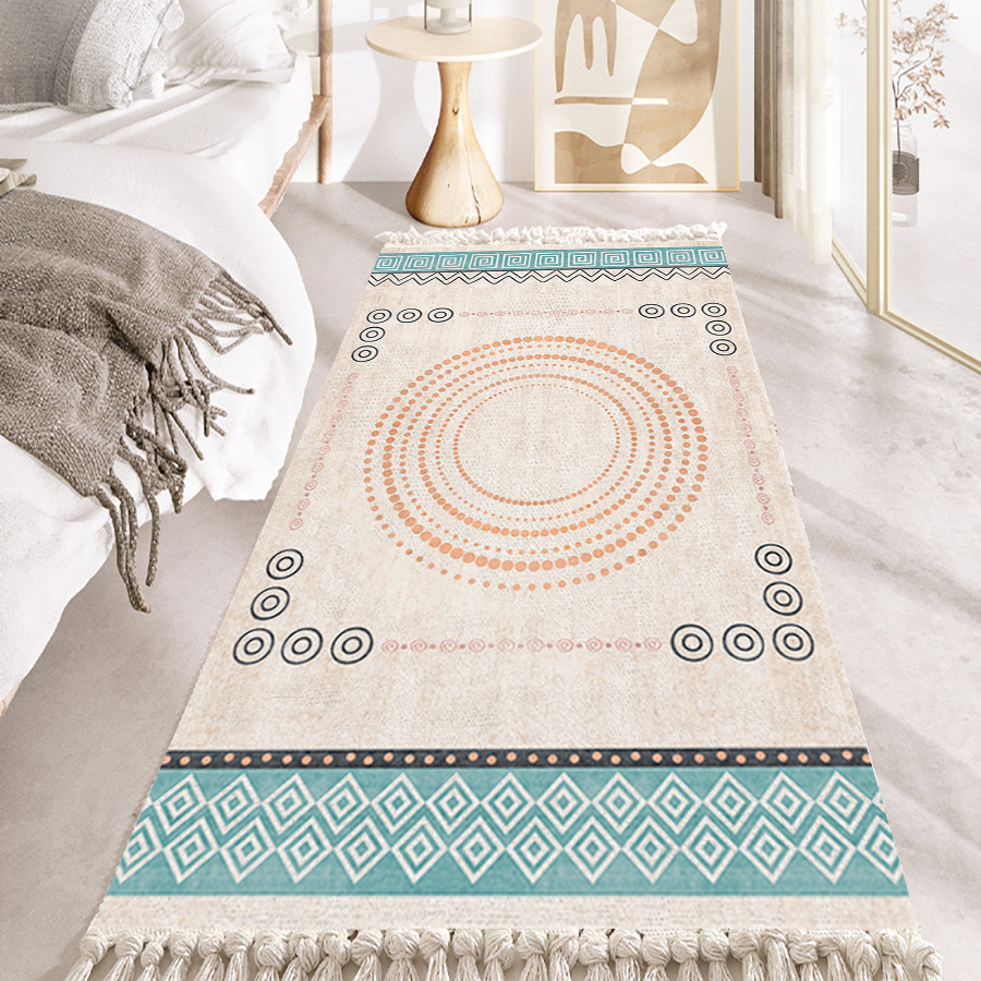 北欧風クロスボーダー綿麻家庭用カジュアル滑り止めフリンジプリント円形カーペットリビングマット寝室ベッドサイドブランケット