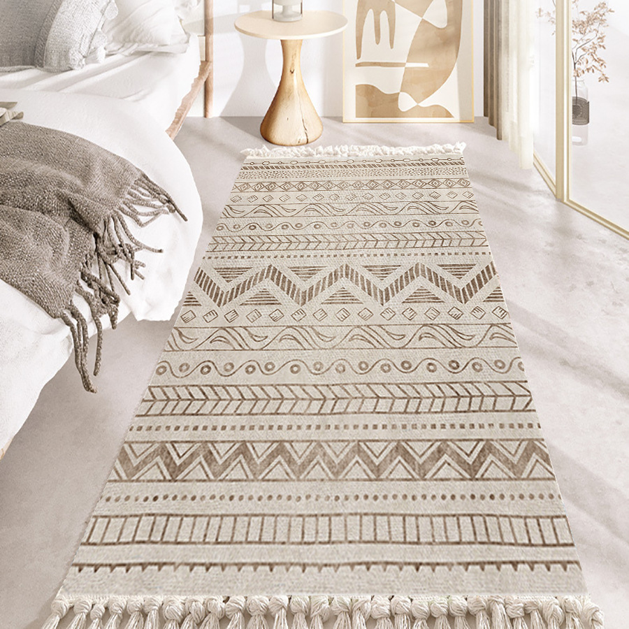 越境貿易 レトロ風 コットン風 リネン風 リビングルーム 寝室 ベッドサイド カーペット マット プリント 長方形 タッセル ストライプ