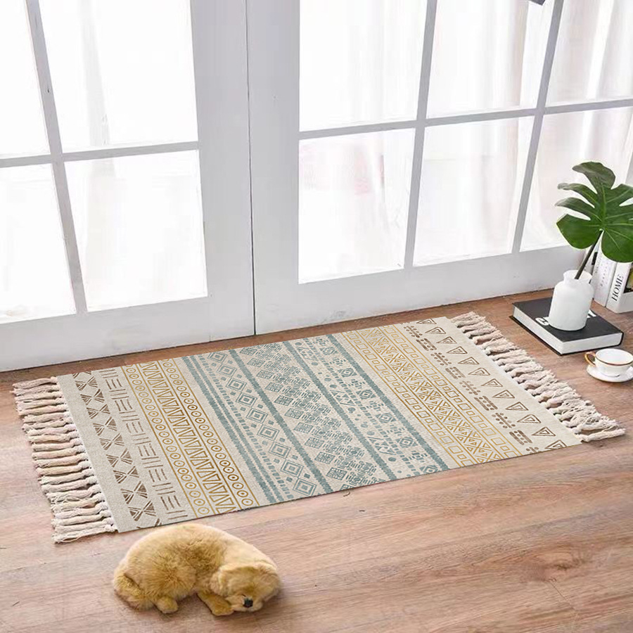 北欧レトロ民族風天然綿麻小清新じゅうたん客間寝室ベッドサイド足マットソファー茶床マット