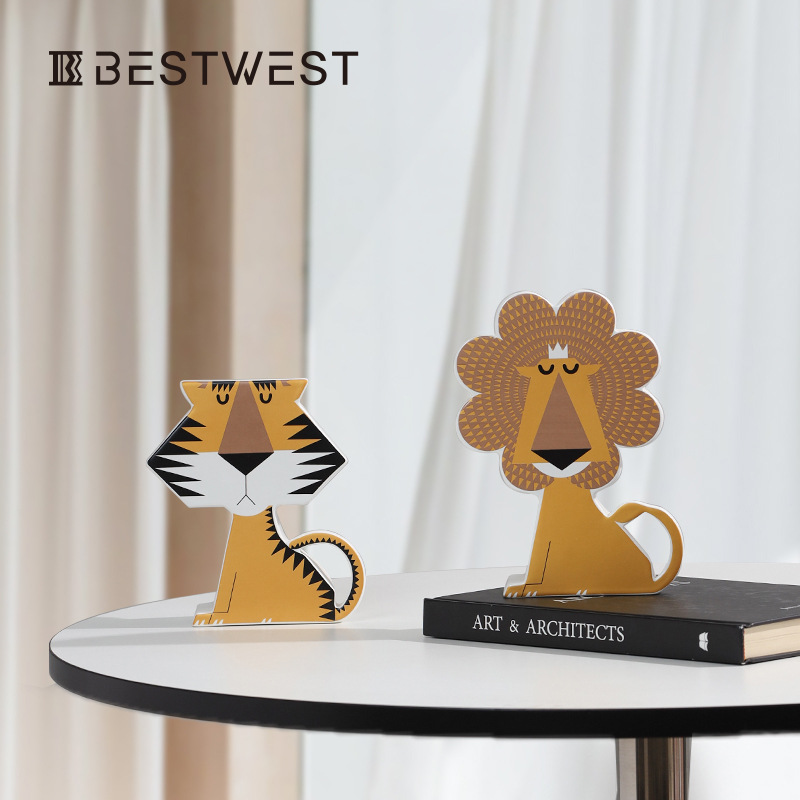 Best west創意彩色陶磁器獅子虎置物現代高級軽豪華軟装家庭装飾品