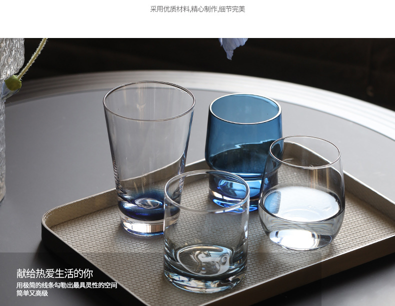 Best west現代シンプルな透明ガラスコップの置物の薄い家庭用リビングルームのハンドル付きのお茶のコップ