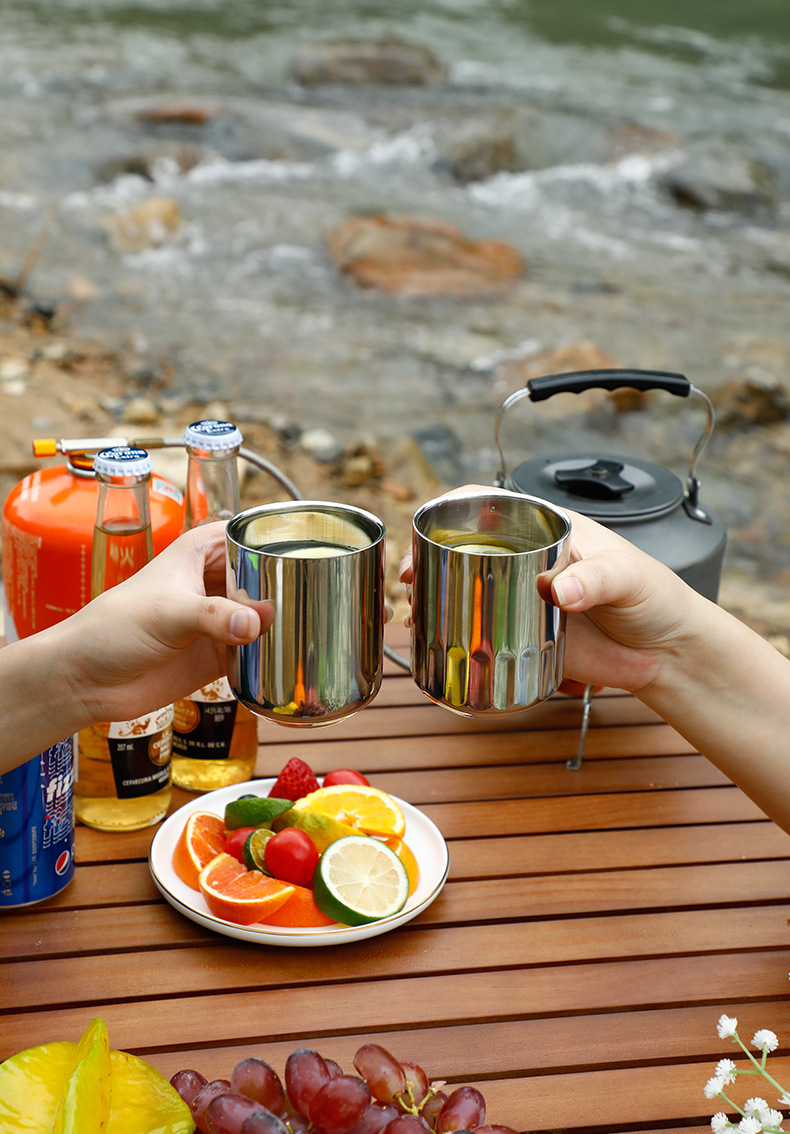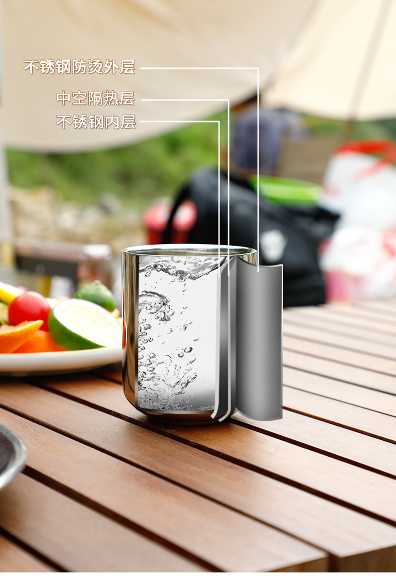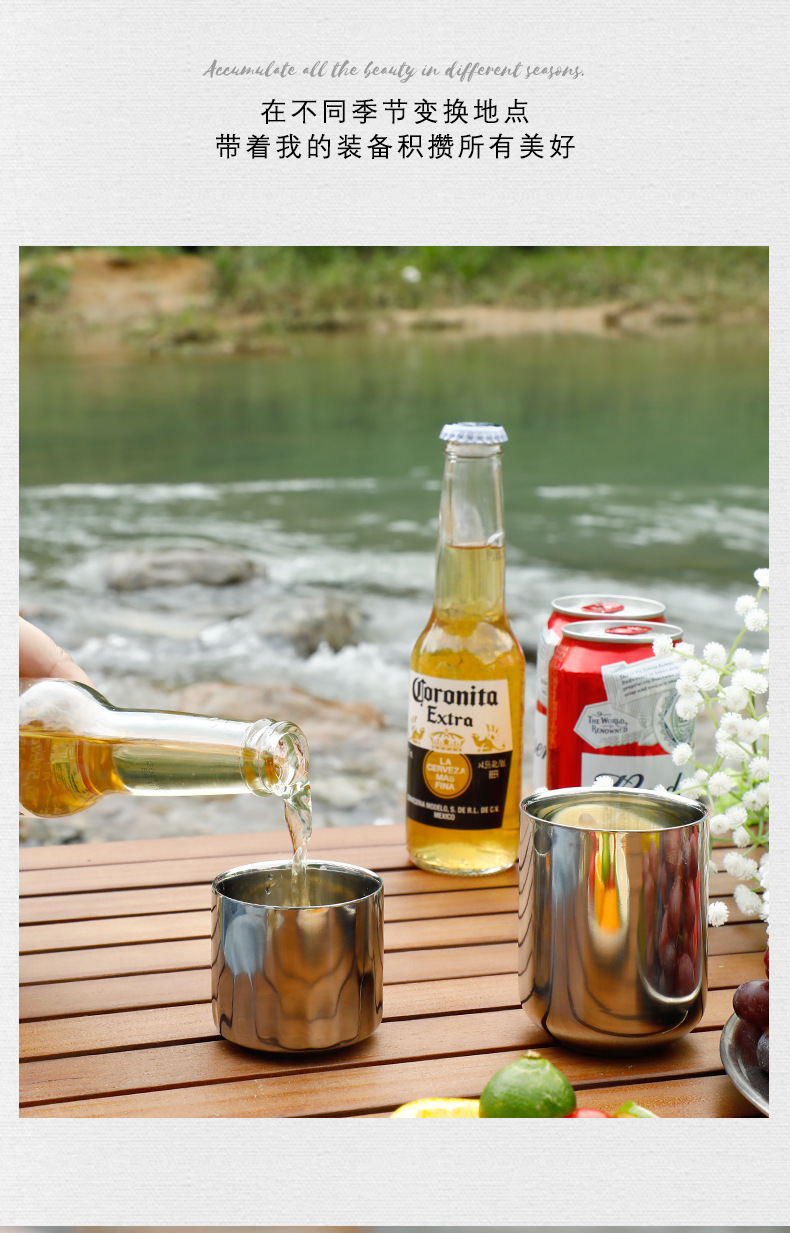 グラス二重ステンレス四匹入り野外ピクニックグラス登山用カップコーヒーカップ厚さ304