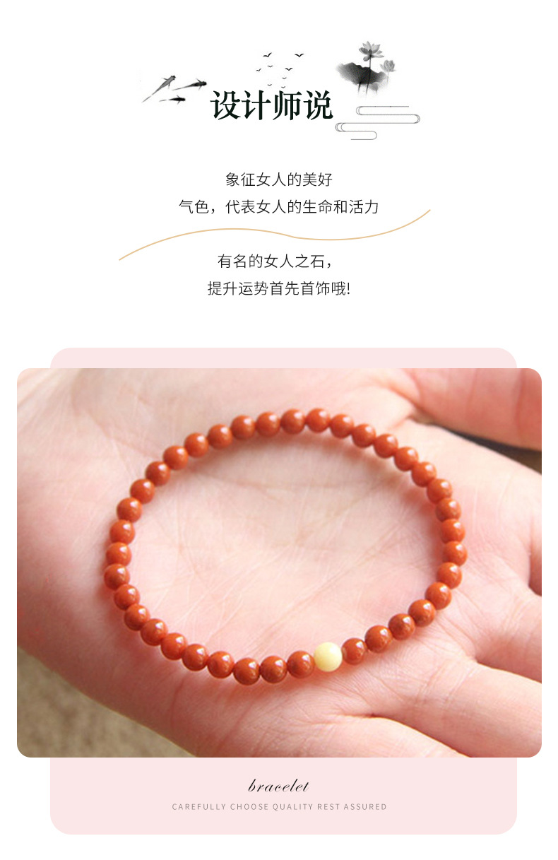 天然紅瑪瑙の手串の女性4mmの極細3mmのブレスレットの古風な気質の本命年は虎の贈り物の水晶です。