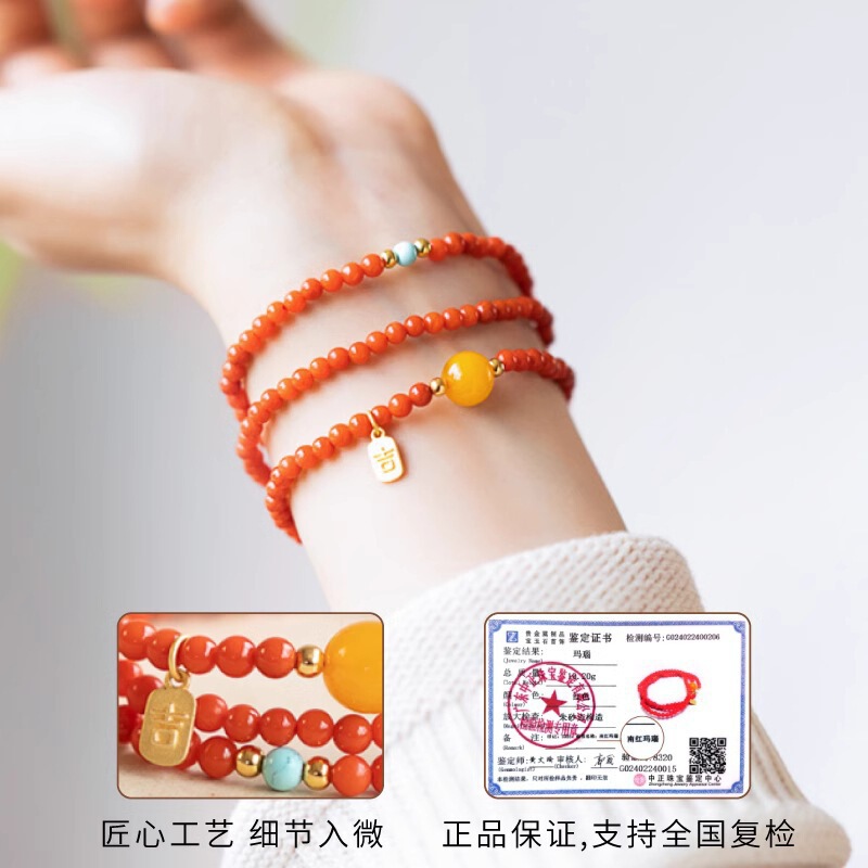 南红多圈手串 女高级感玉石串珠红色玛瑙手链珊瑚小米珠 现货批发