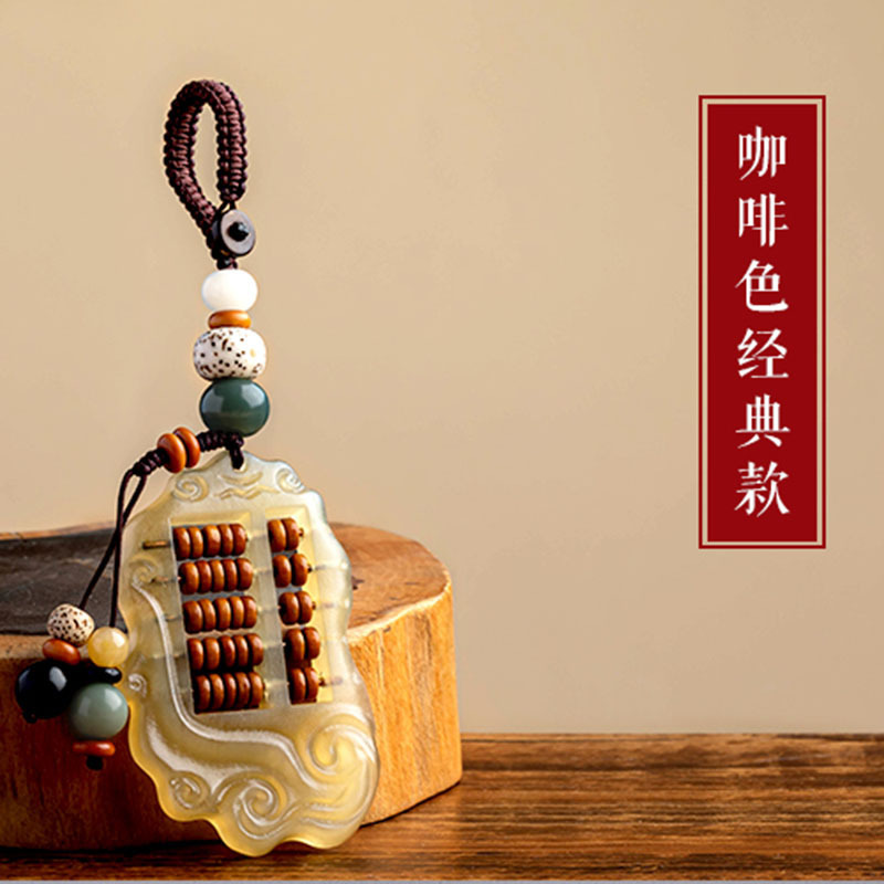 保真天然羊角そろばん自動車キーホルダー男女クリエイティブカップル鍵ストラップチェーン