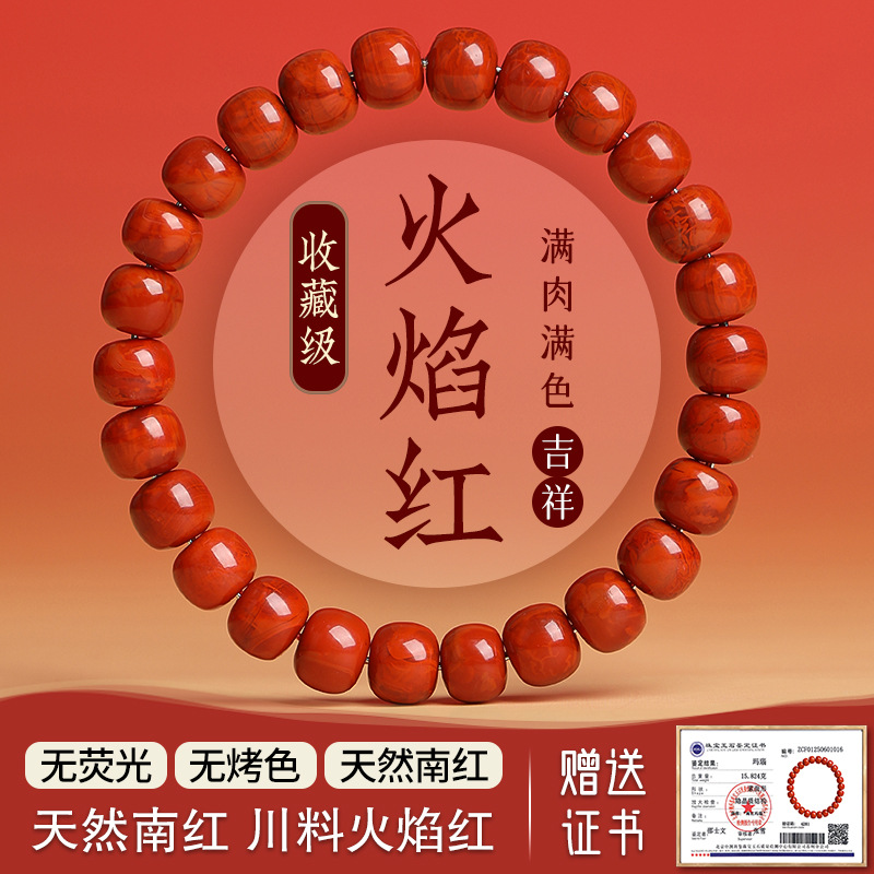 跨境川料火焰纹南红手串女男玉石直切老型散珠文玩项链坠玛瑙手链